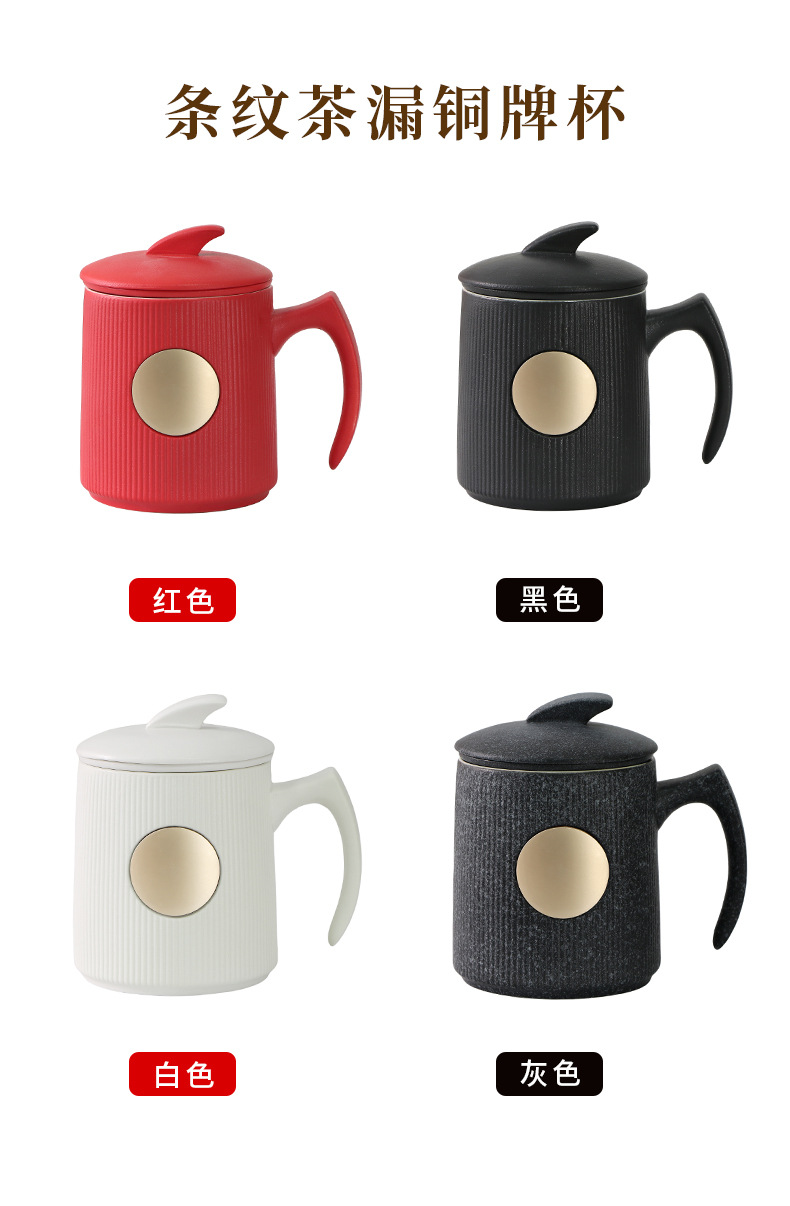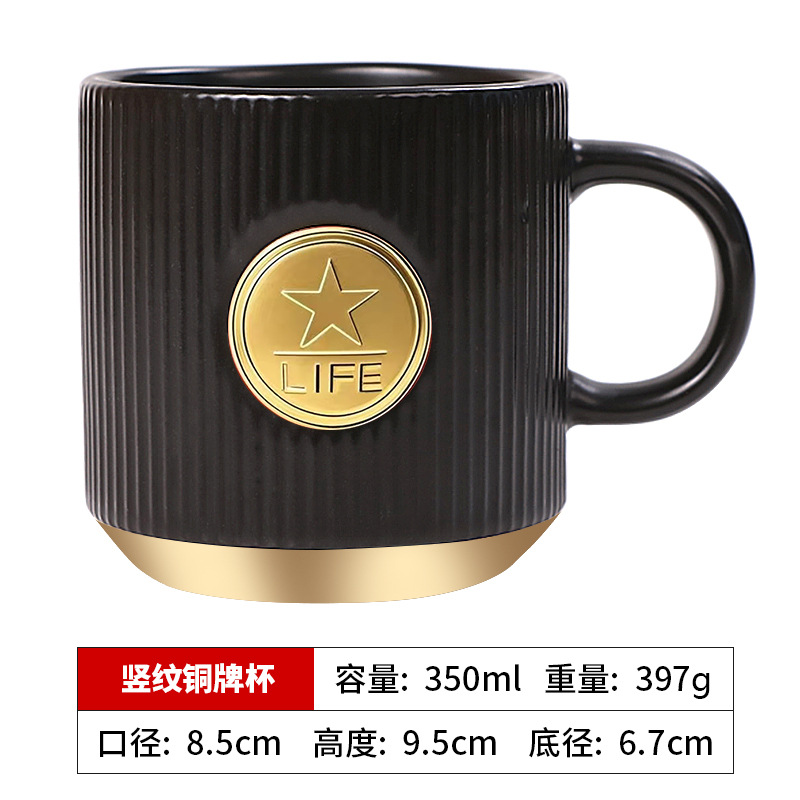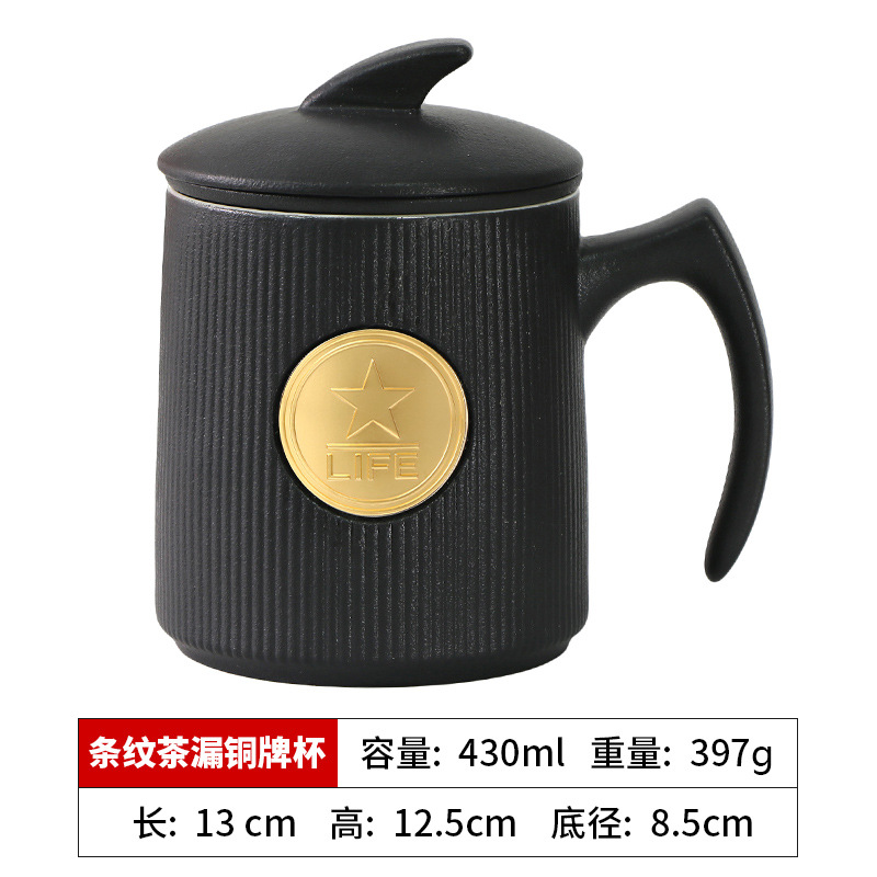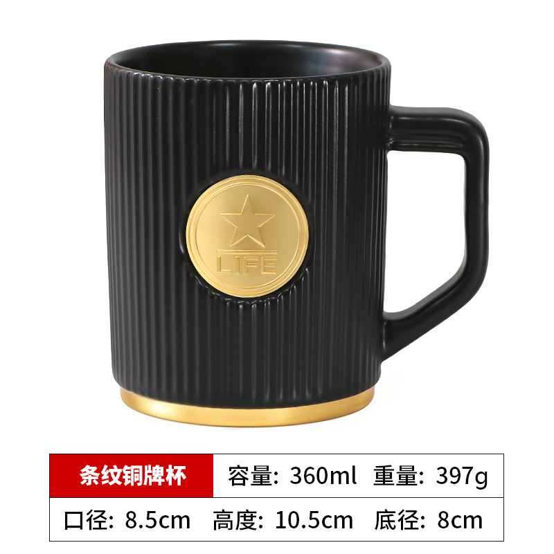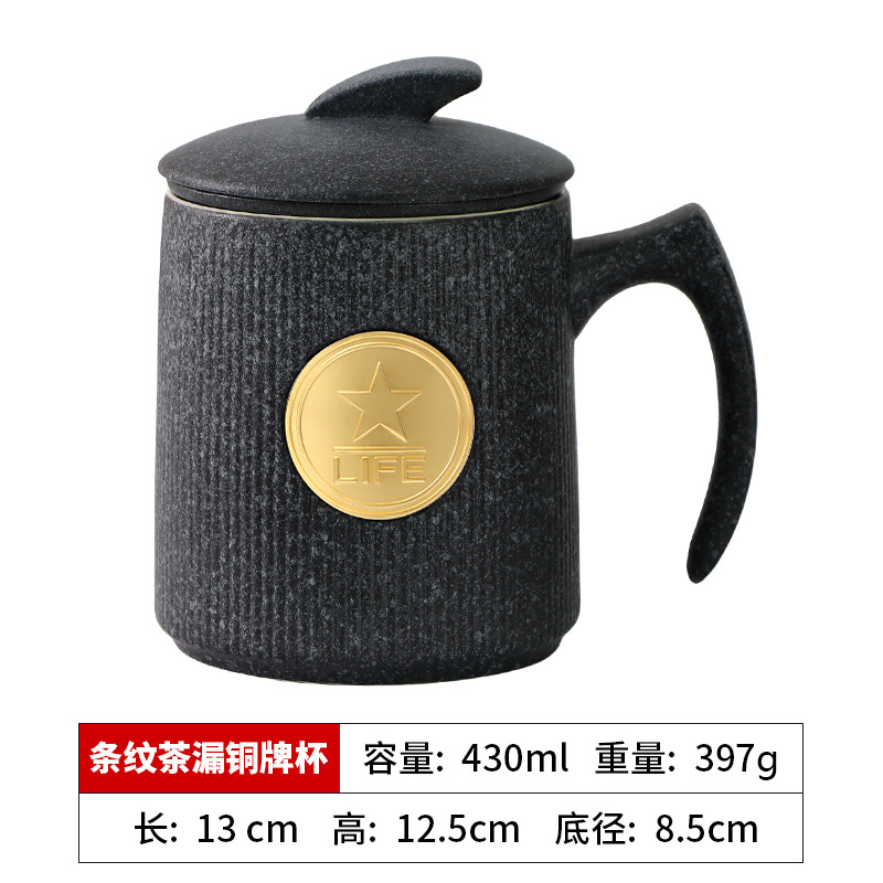 • 검은색 세로무늬 사무용 동메달 컵(차 배수구 포함)