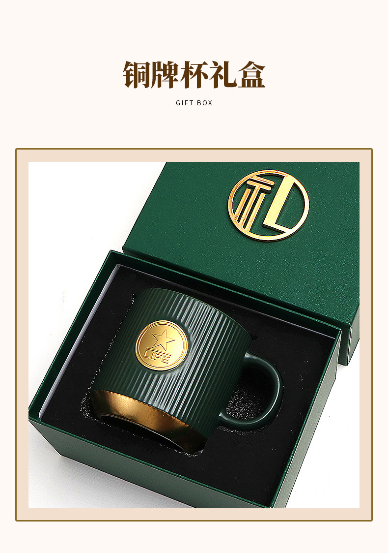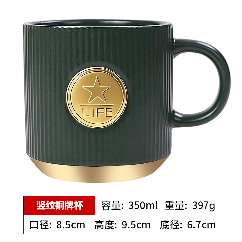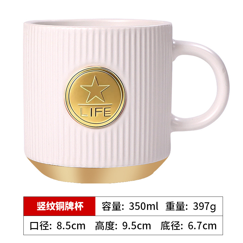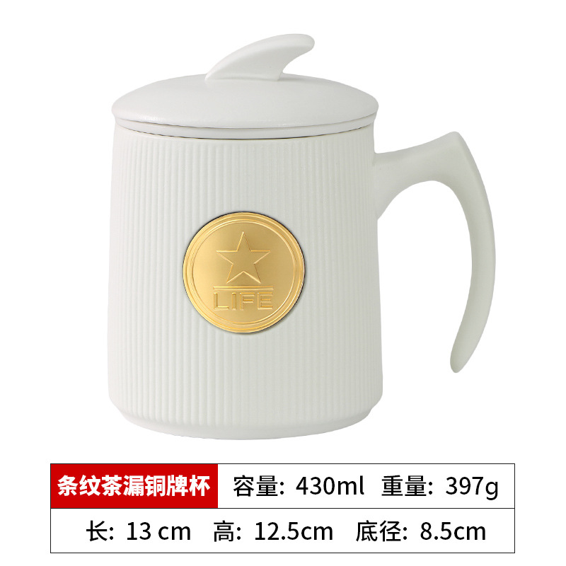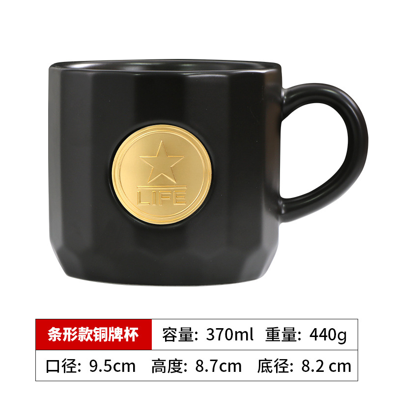 • 검은색 세로무늬 사무용 동메달 컵(차 배수구 포함)