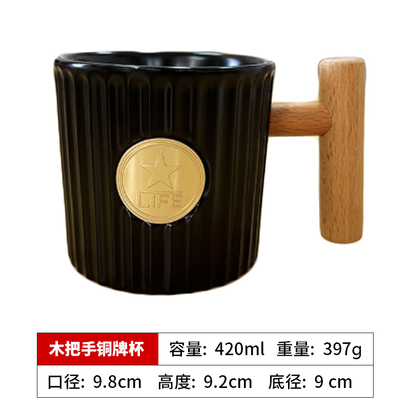 • 검은색 나무 손잡이가 있는 수직 구리 컵