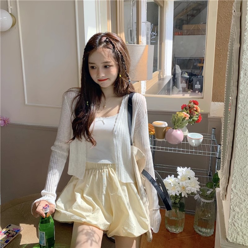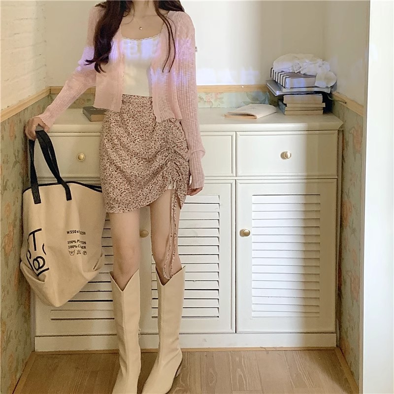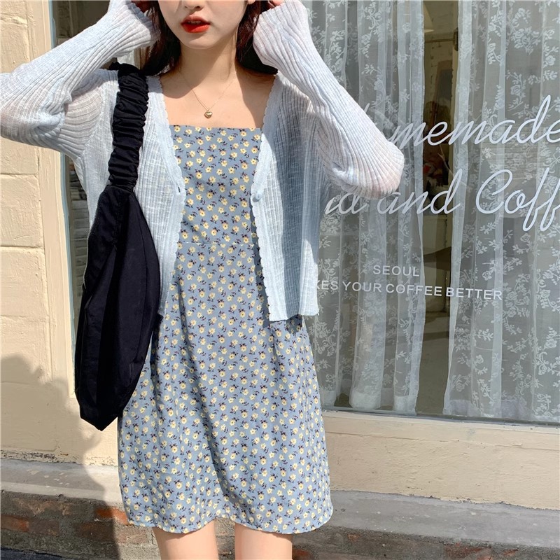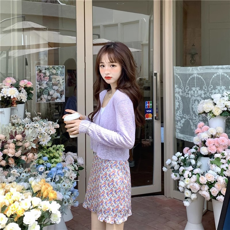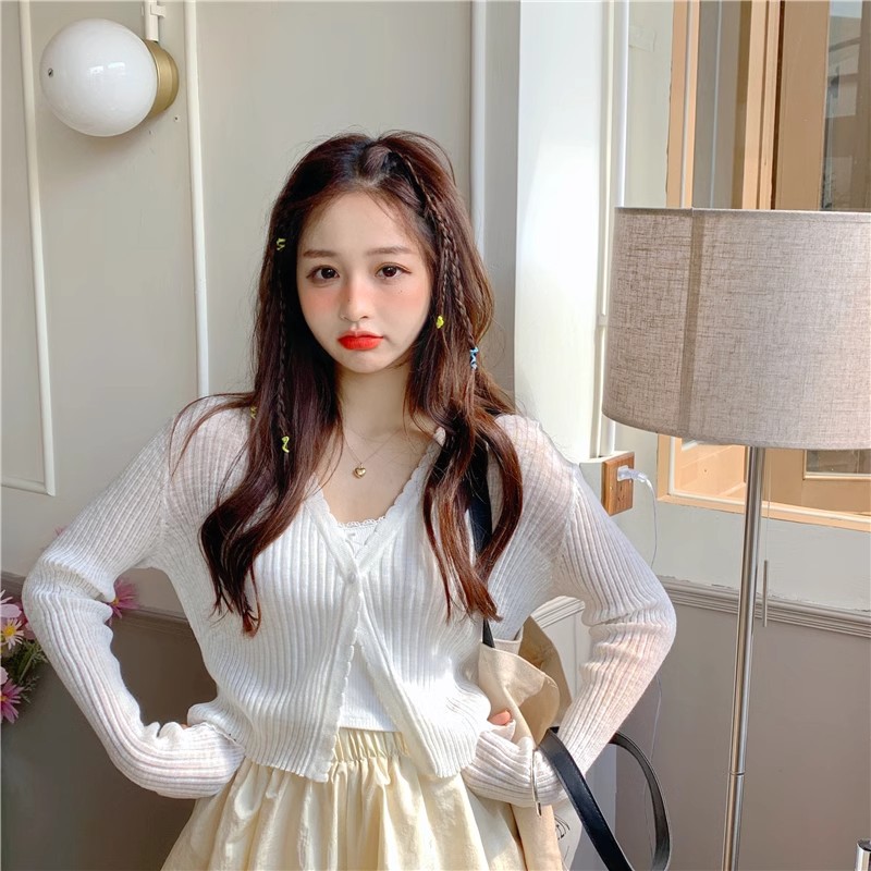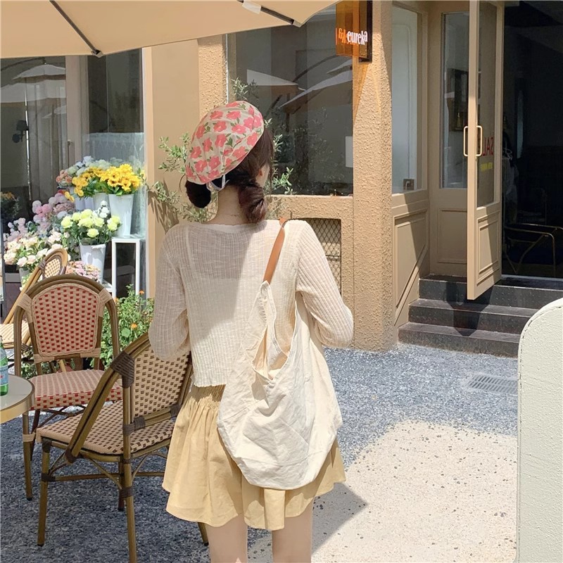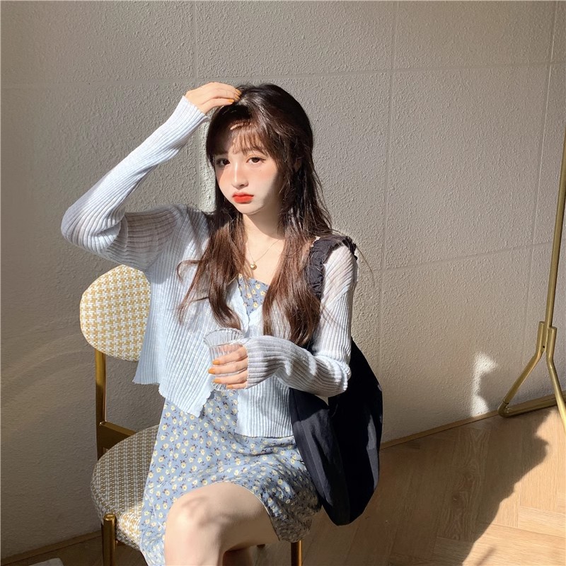 여름 얇은 V 넥 니트 카디건 여성용 에어컨 셔츠 숄더 아웃 매치하는 긴 스커트 아이스 실크 툴레 선 스크린 코트스토어 가기