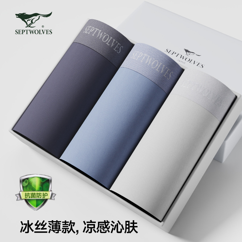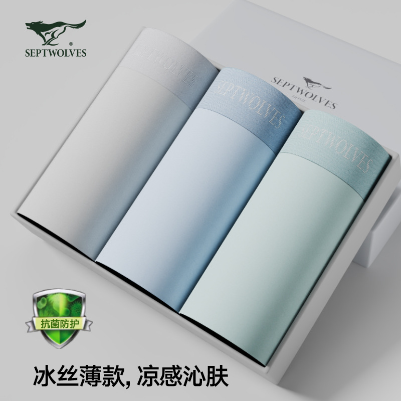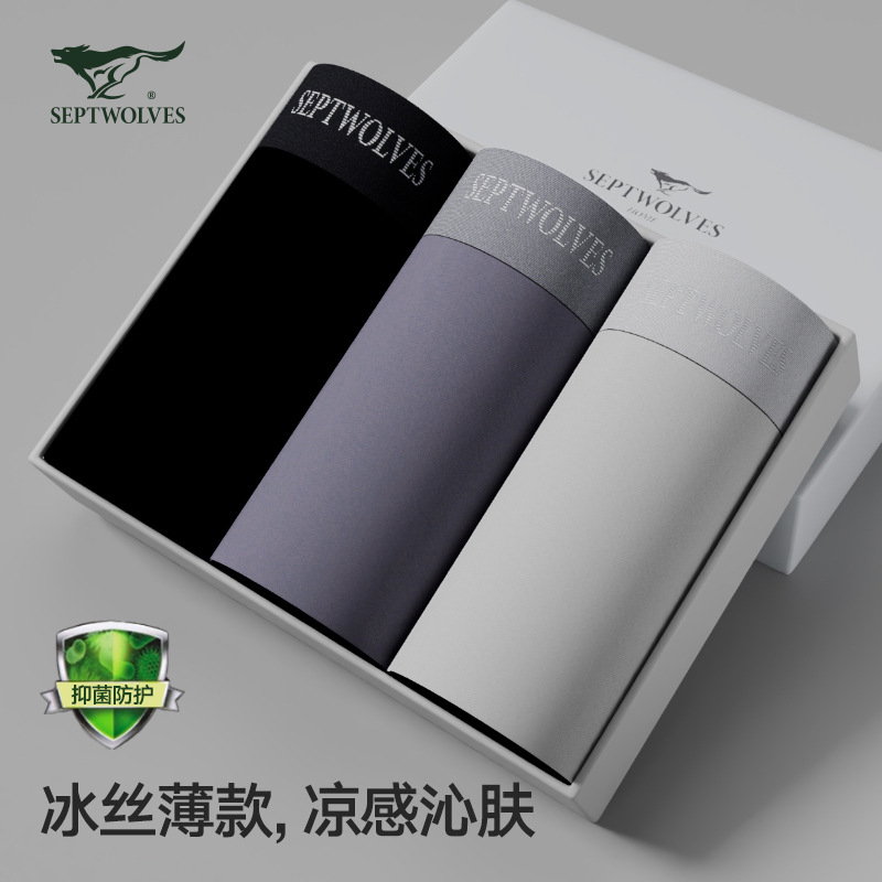 Septwolves 남성용 나일론 항균 복서 팬티 여름 얇은 통기성 속옷 얼음 실크 원활한 복서 팬티 3 팩스토어 가기