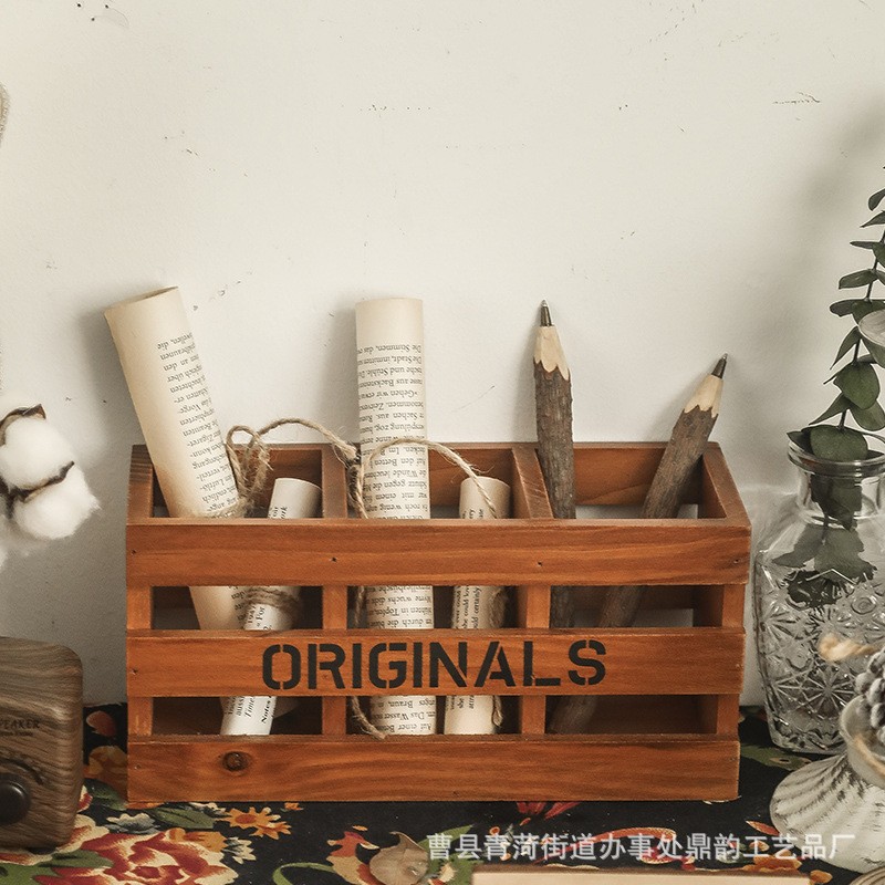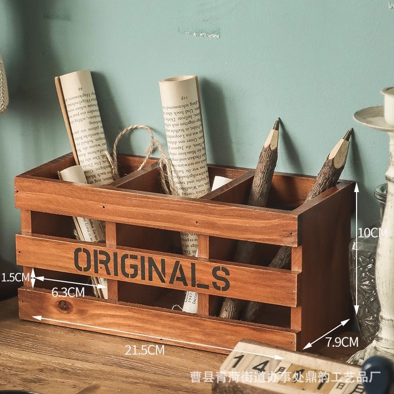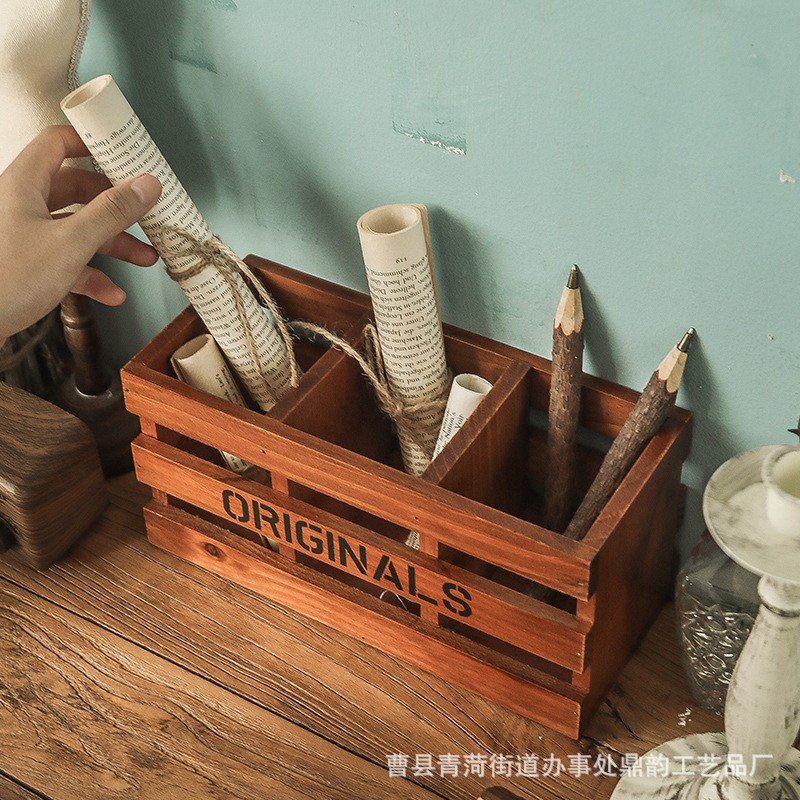 사무실 펜 홀더 보관 나무 복고풍 책상 학교 용품 편지지 상자 데스크탑 메이크업 브러쉬 버킷 크리 에이 티브 장식품스토어 가기