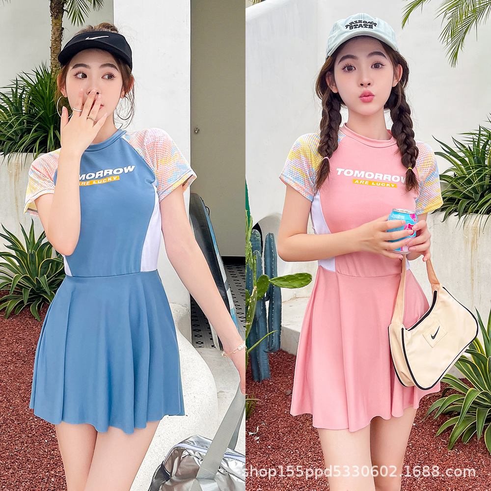 학생 수영복 여성 원피스 스커트 스타일 휴일 태양 보호 수영 세트 학생 여름 수영 세트 도매 약속 8232