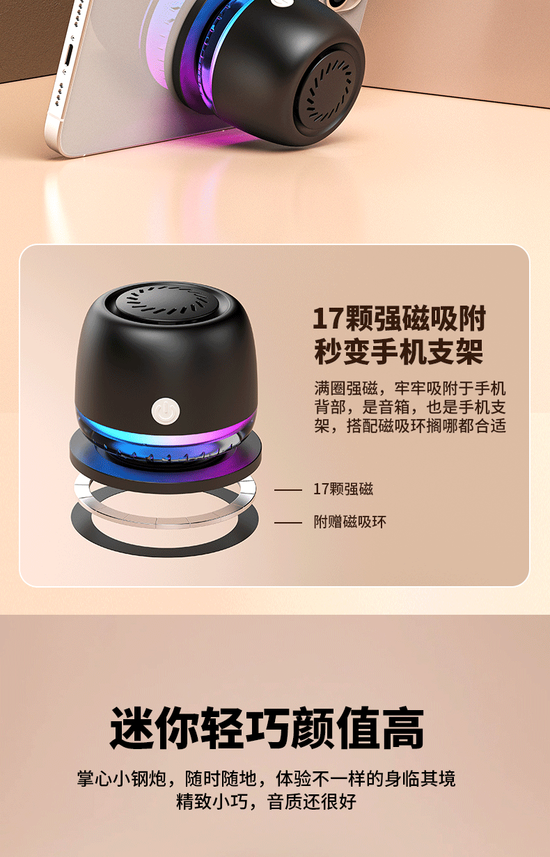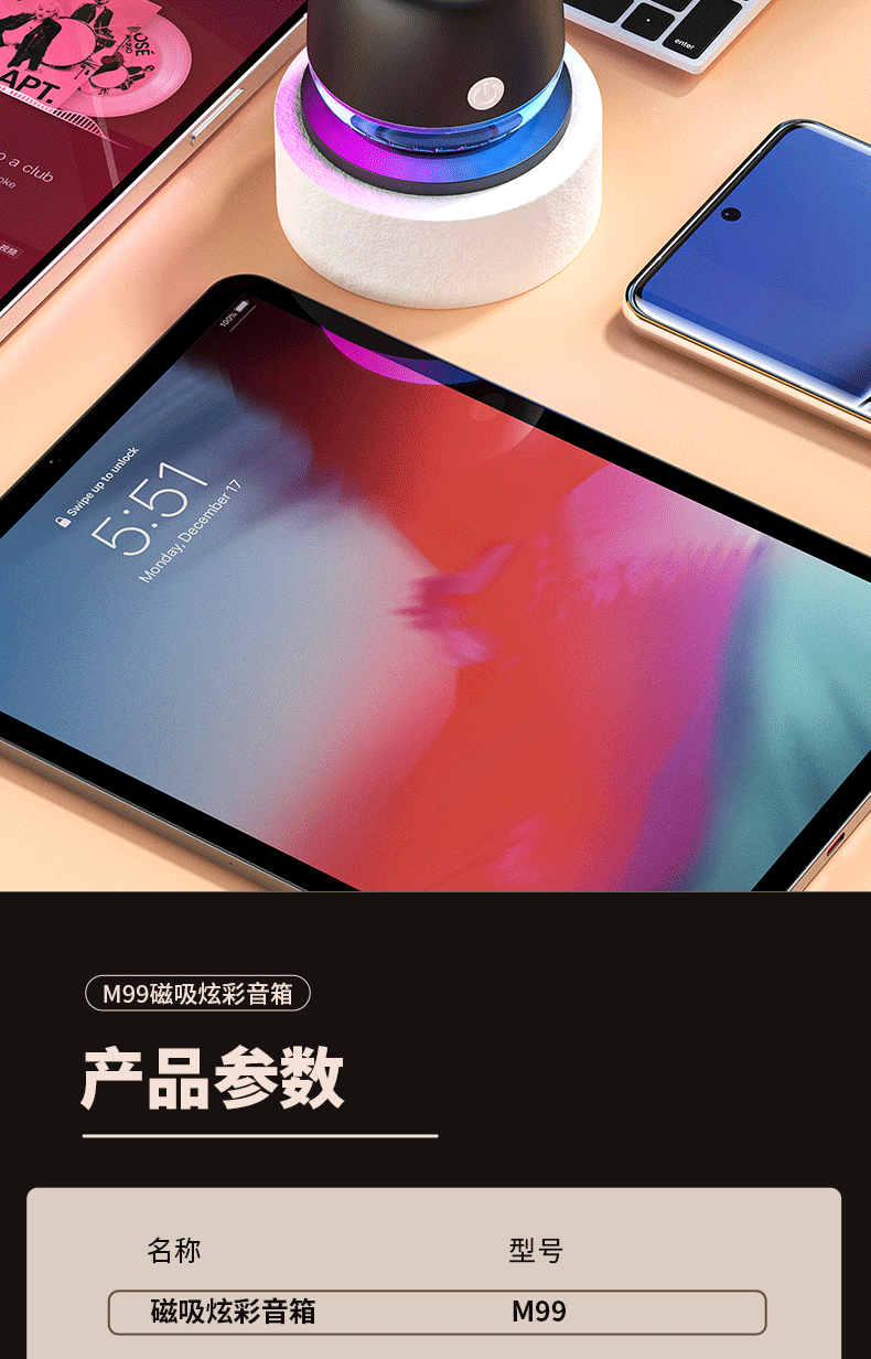 2026 공장 자체 모델 M99 에어백 자기흡착 스피커 IPX6 TWS 다채로운 조명 음성 통화 블루투스 스피커스토어 가기
