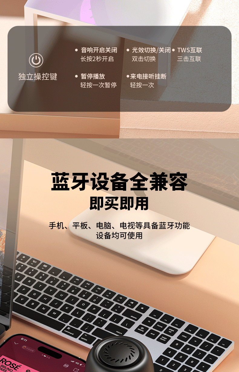 2026 공장 자체 모델 M99 에어백 자기흡착 스피커 IPX6 TWS 다채로운 조명 음성 통화 블루투스 스피커