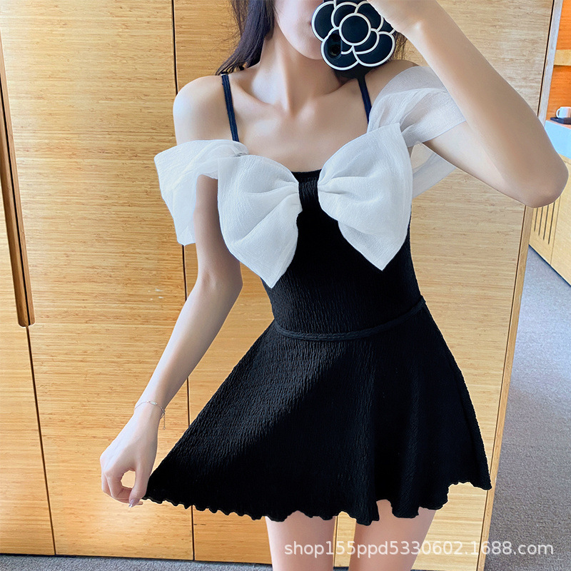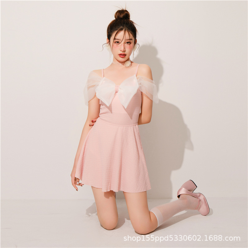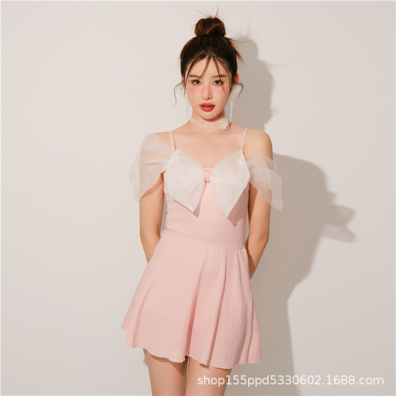 여성용 원피스 수영복 새로운 작은 가슴 스트랩 가슴 패드 스틸 홀더 보수적 인 단색 배꼽 커버 얇은 달콤한 바람 약속 6017스토어 가기