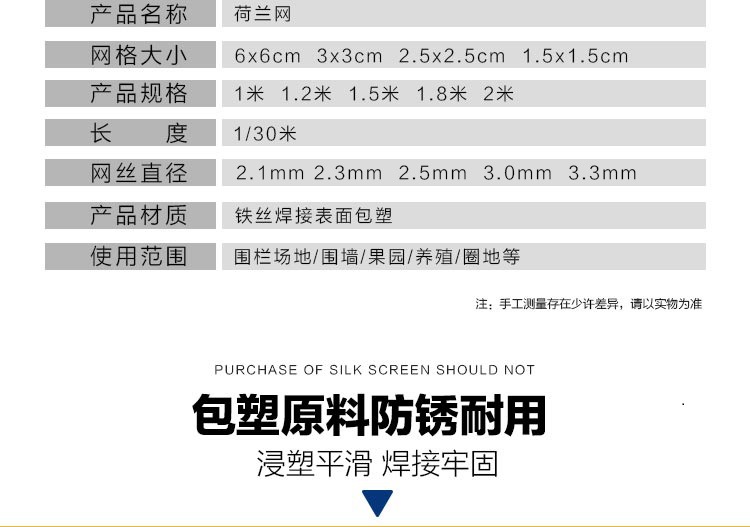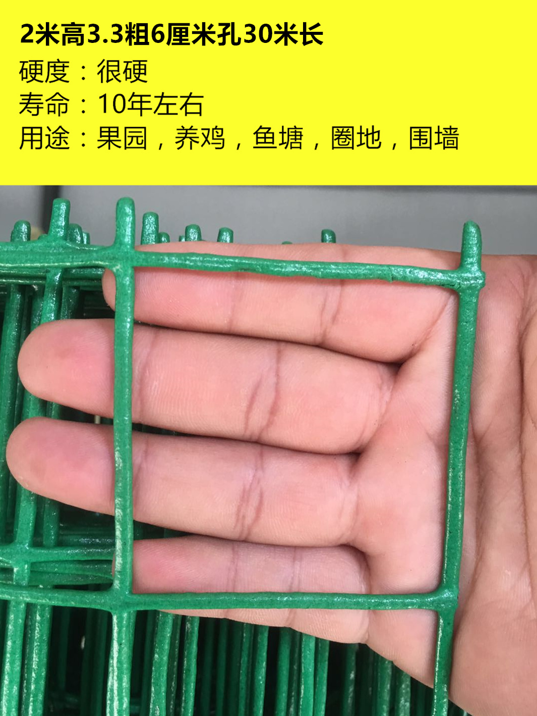 • 2m 높이 x 18m 길이 * 1.6 두께 * 3cm 구멍, 닭과 오리가 더 적합합니다.