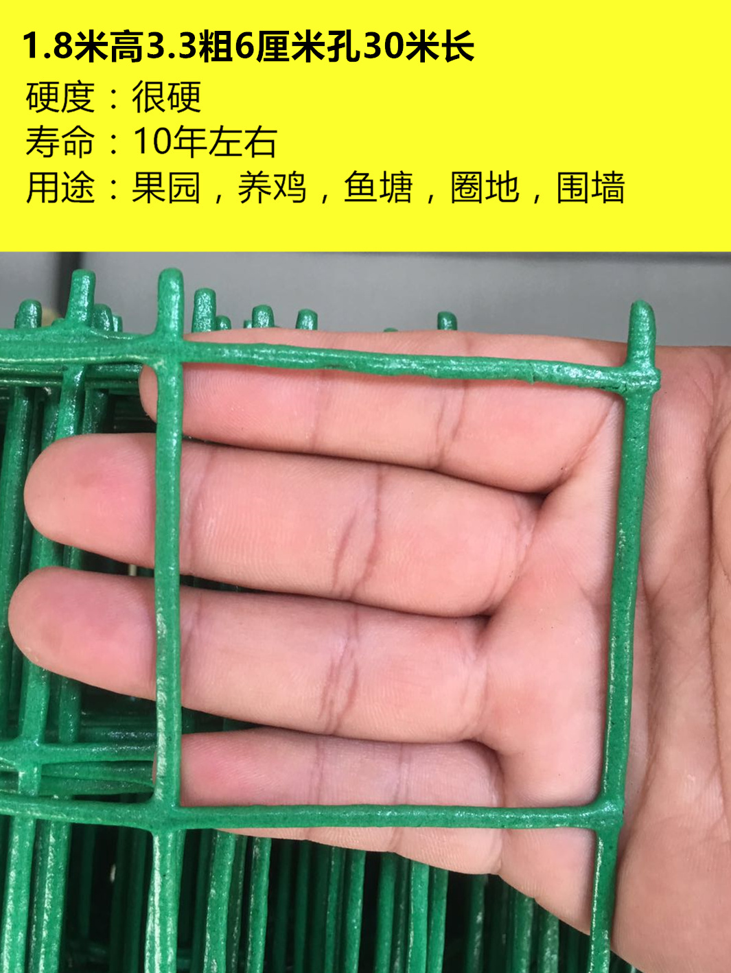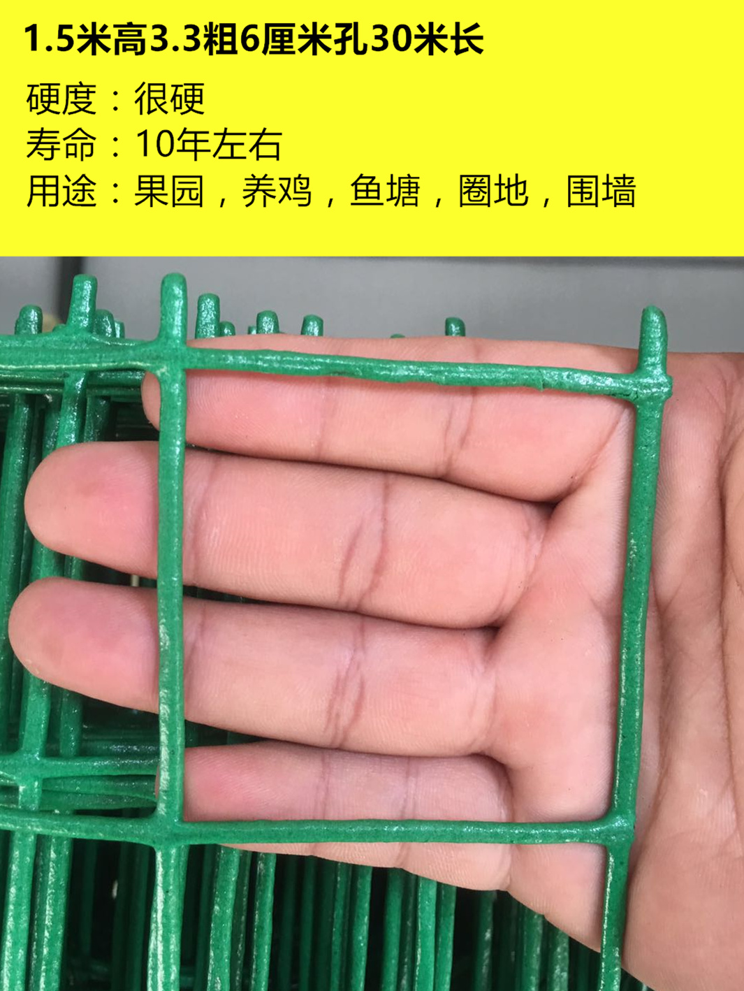 • 1.5m 높이 x 18m 길이 * 1.6 두께 * 3cm 구멍, 닭과 오리에 더 적합