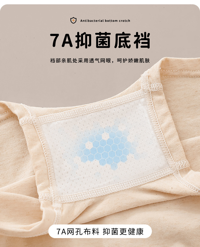 Tyne Bear 어린이 속옷 자연색 면화 비 염색 소녀 속옷 7A 등급 항균 걸스 복서
