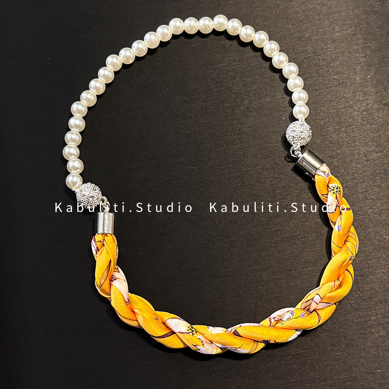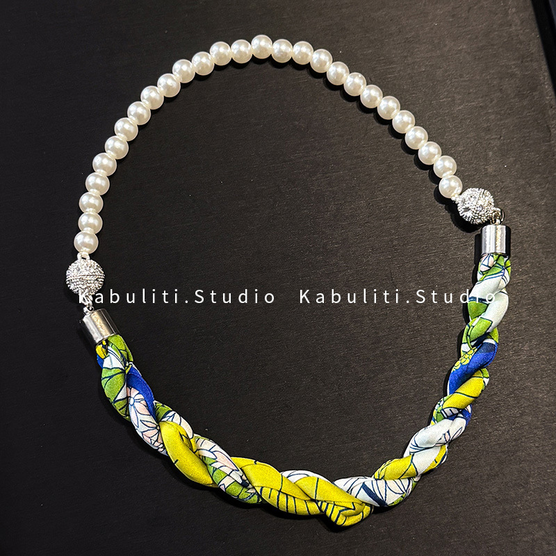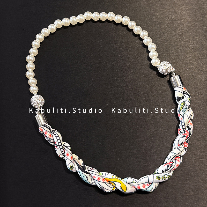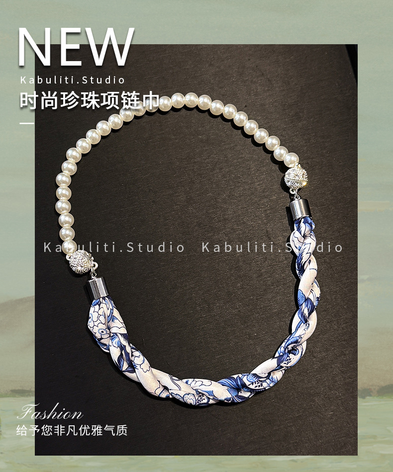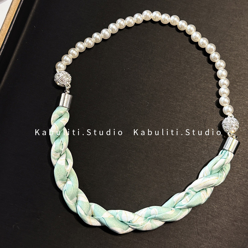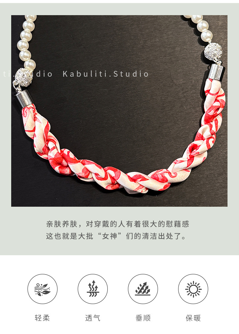 진주 자석 버클 트위스트 롱 스카프 여성용 목 보호대 쇄골 스카프 셔츠와 매치하는 얇은 스카프스토어 가기