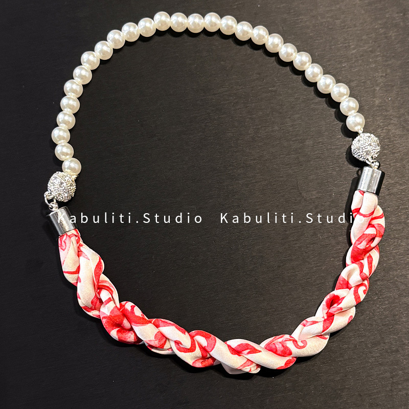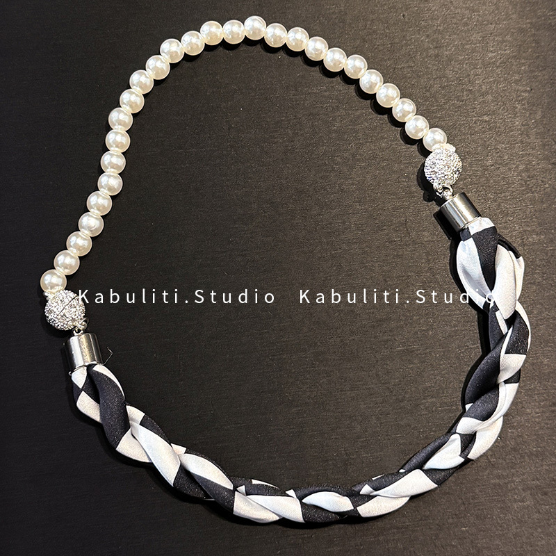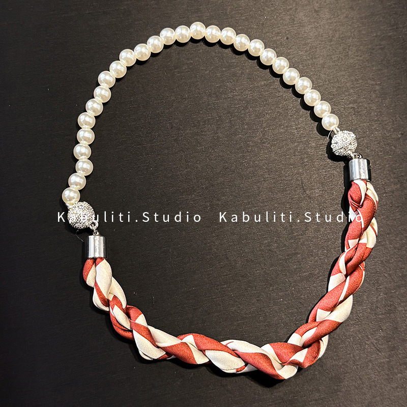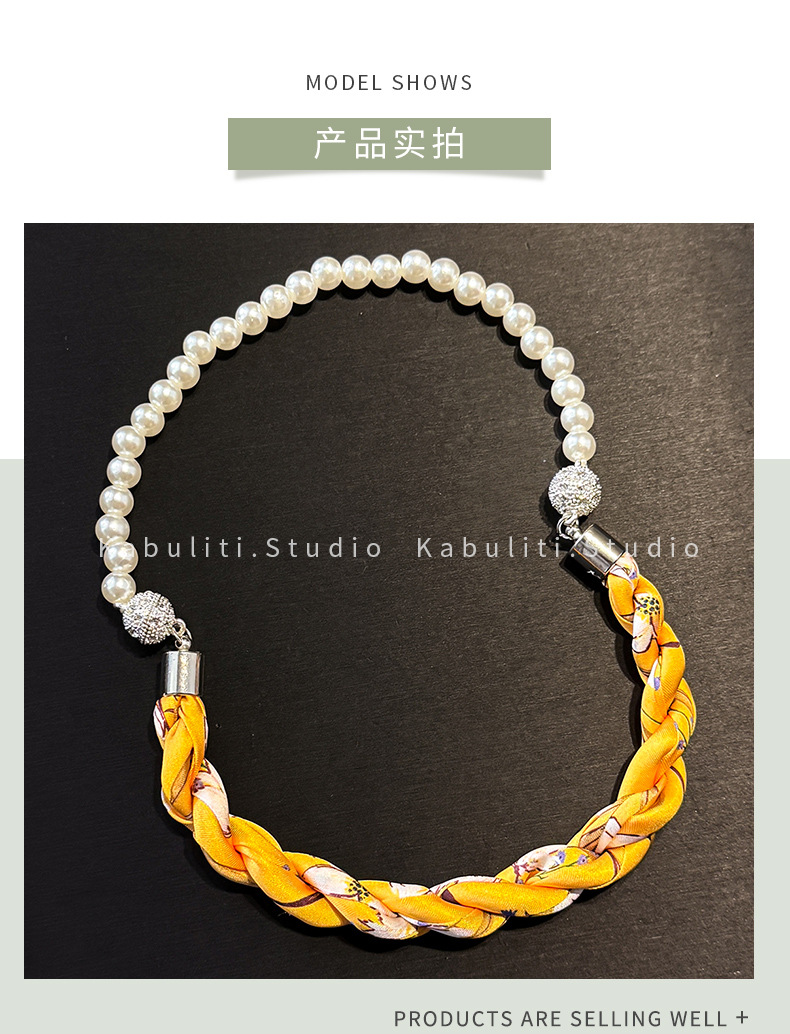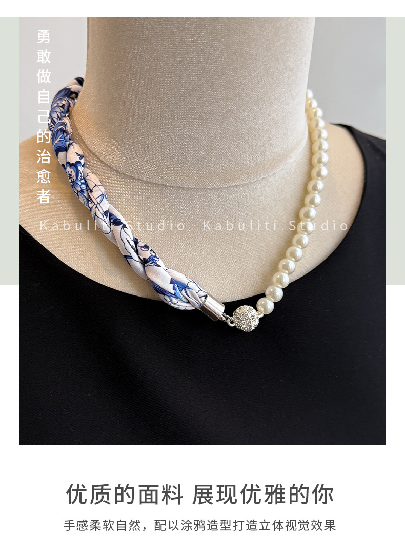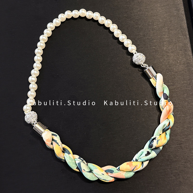 진주 자석 버클 트위스트 롱 스카프 여성용 목 보호대 쇄골 스카프 셔츠와 매치하는 얇은 스카프스토어 가기