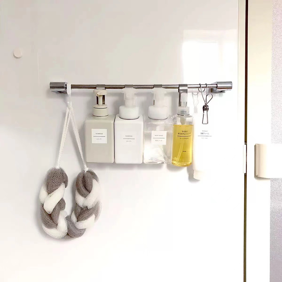 욕실병 원형걸이 샴푸병걸이 펀치 없는 욕실교체병수납선반 리필병링스토어 가기
