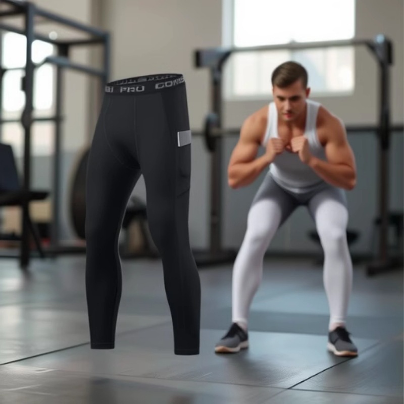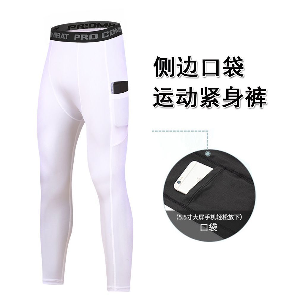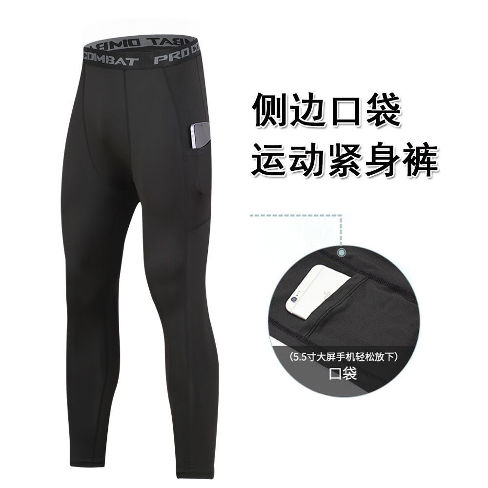 포켓 스포츠 타이츠 남성용, 러닝, 농구, 축구 트레이닝 레깅스, 고탄력 속건 통기성 피트니스 팬츠스토어 가기