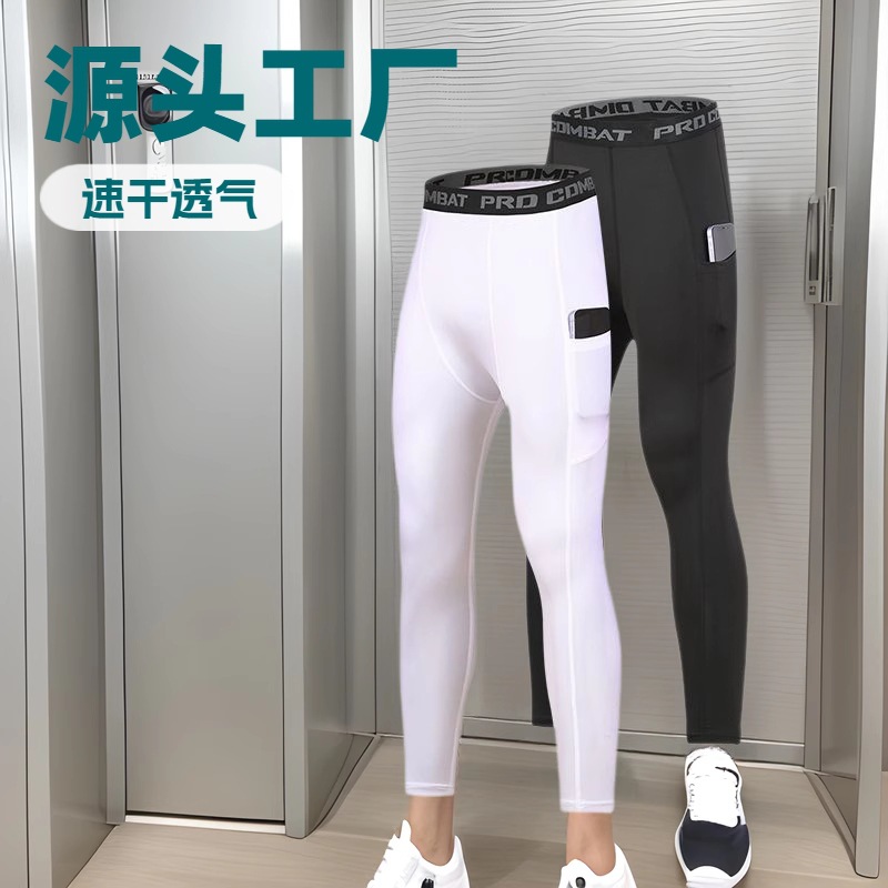 포켓 스포츠 타이츠 남성용, 러닝, 농구, 축구 트레이닝 레깅스, 고탄력 속건 통기성 피트니스 팬츠