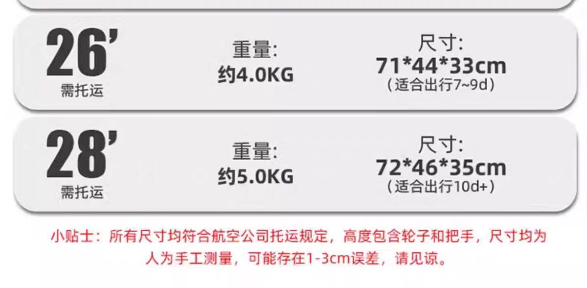 • 24inch 위탁 필요 - 약 8일 여행에 적합 - 학생 이동 인기 사이즈