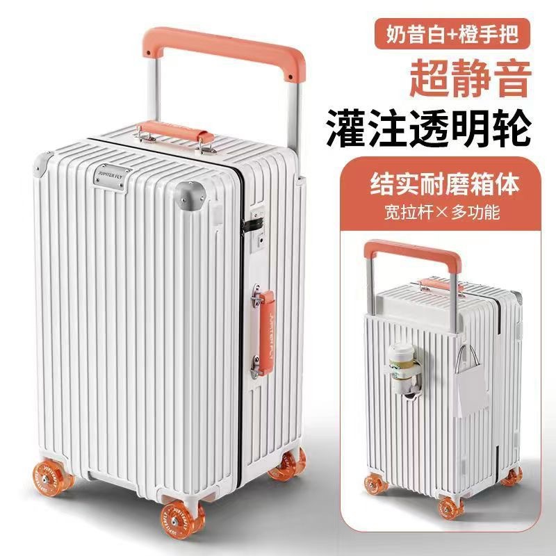 • 화이트 & 오렌지 - 지퍼 스타일 (와이드 타이로드 + 가죽 손잡이 + 투명 휠)