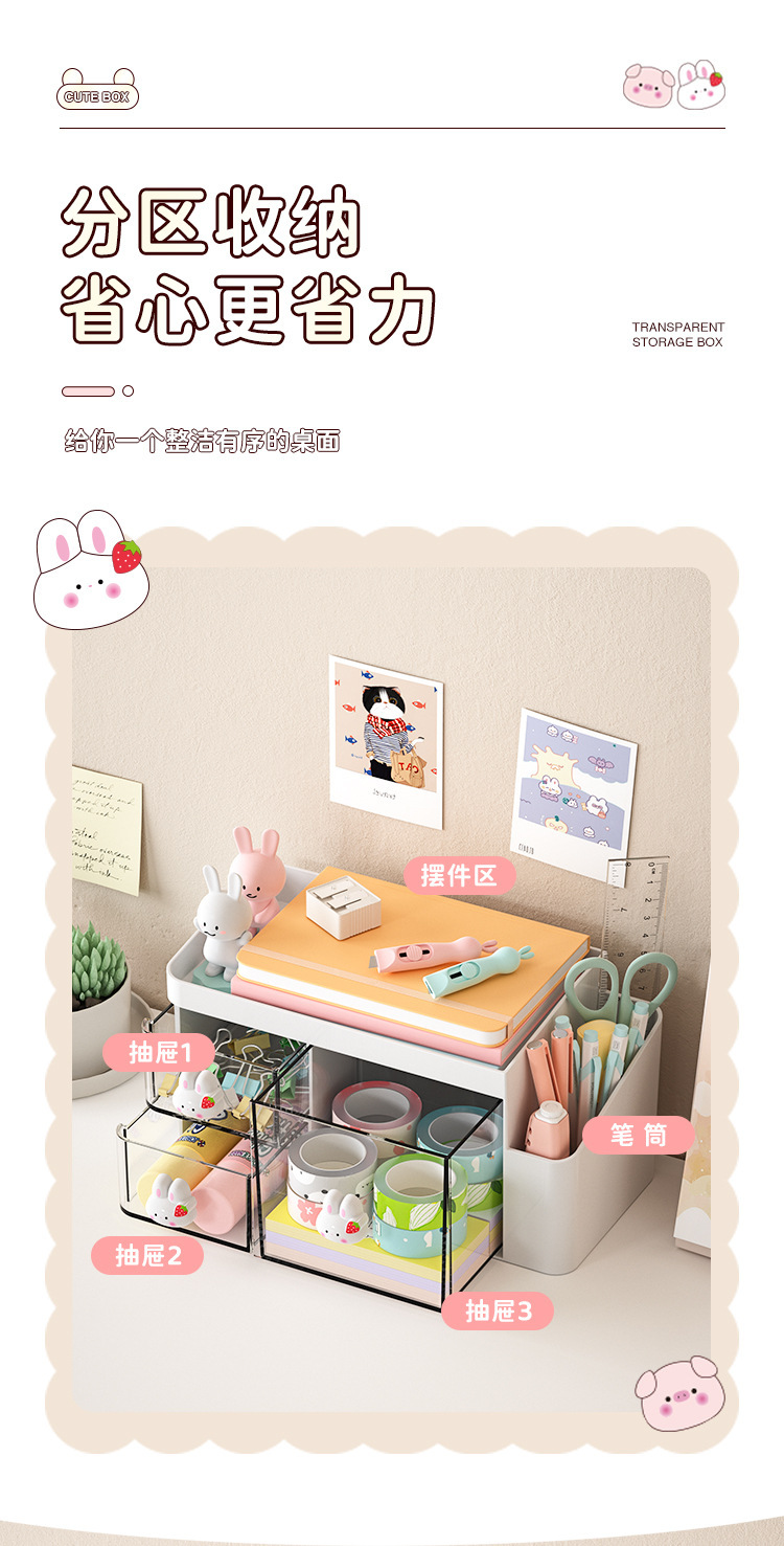 서랍형 핸드북 펜홀더 학생 데스크탑 수납함 수납선반 책상 핸드북 문구 정리 어린이 헤어 액세서리