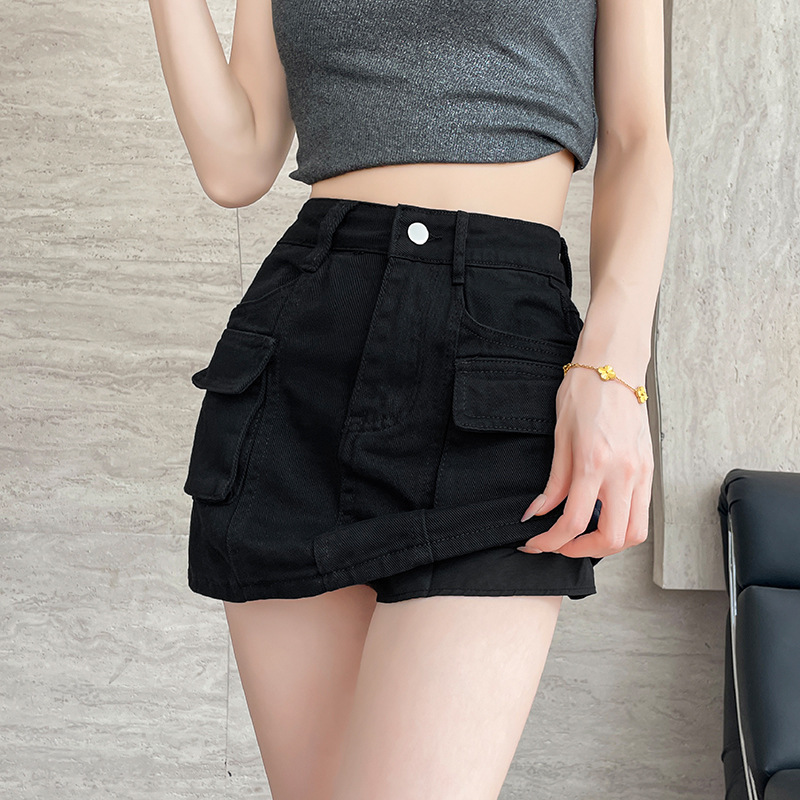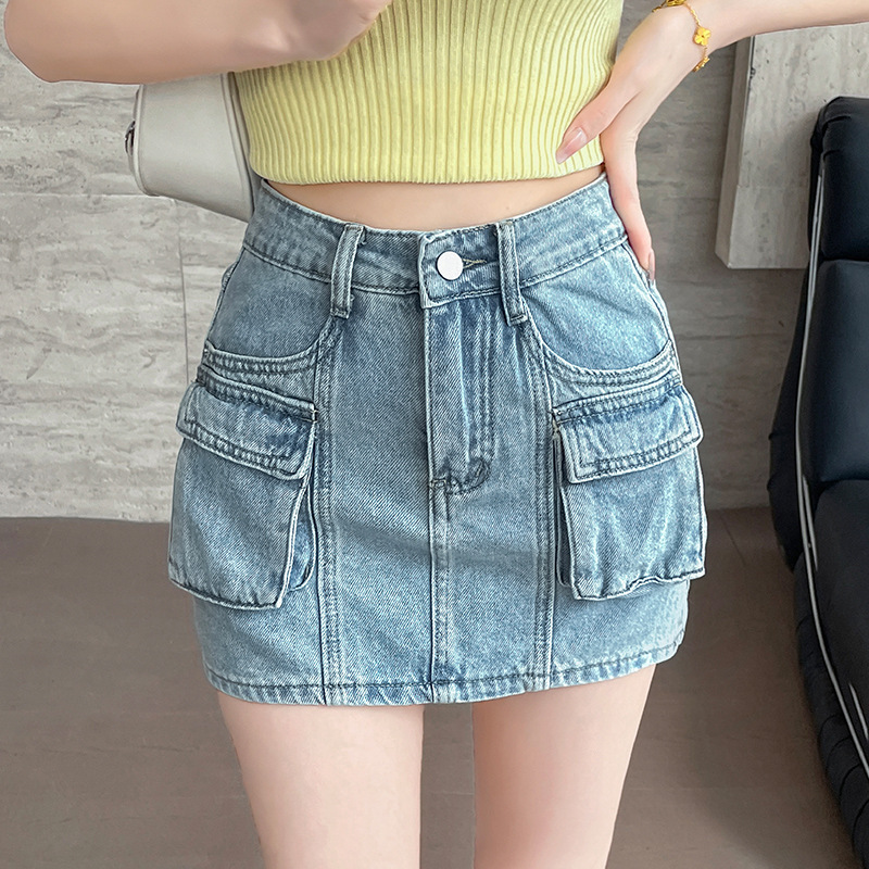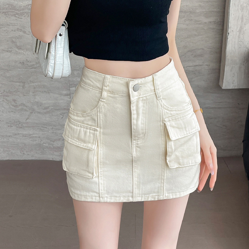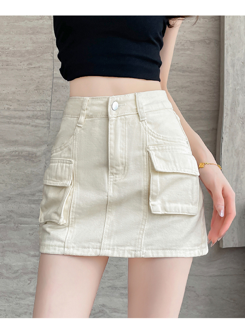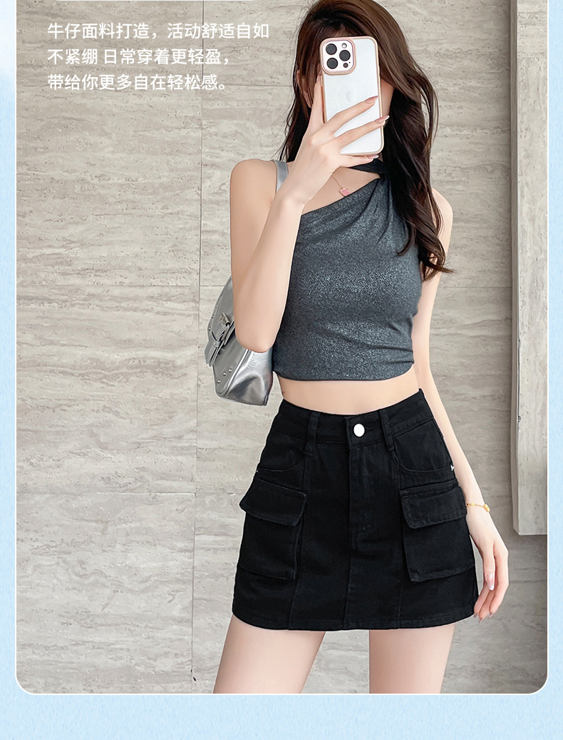 여성용 더블 포켓 노출 방지 A 라인 스커트 여성 여름 신작 한국 스타일 복고풍 다용도 작업복 스커트