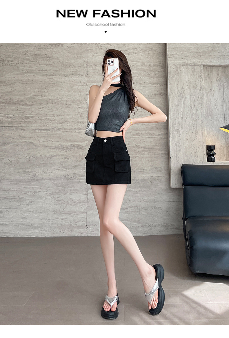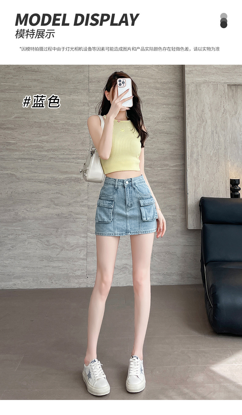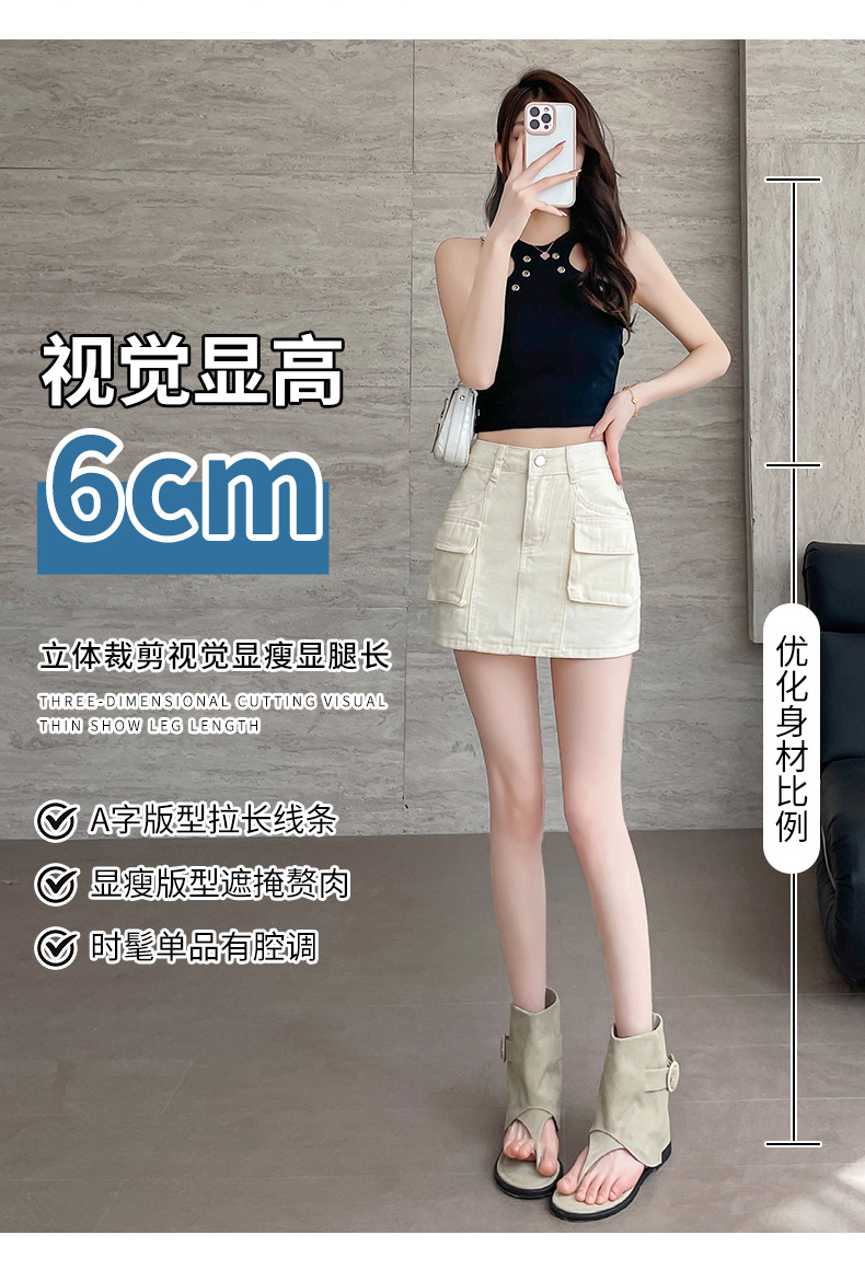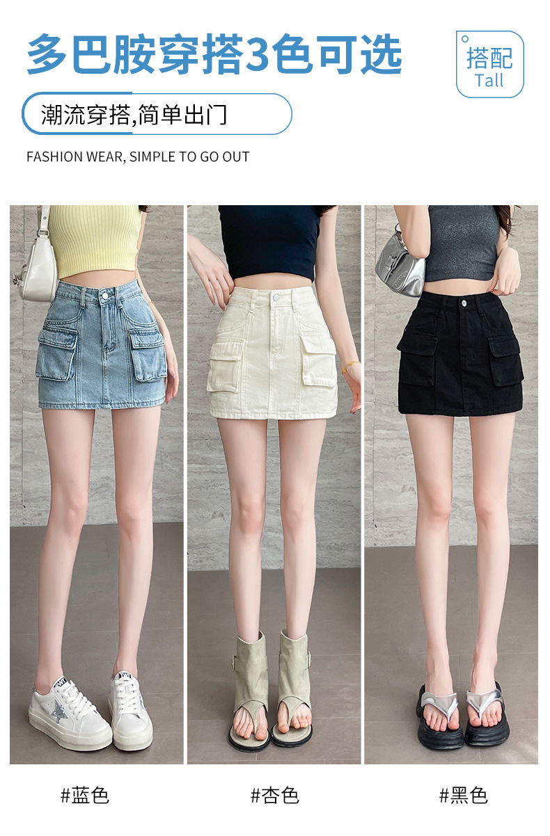 여성용 더블 포켓 노출 방지 A 라인 스커트 여성 여름 신작 한국 스타일 복고풍 다용도 작업복 스커트스토어 가기