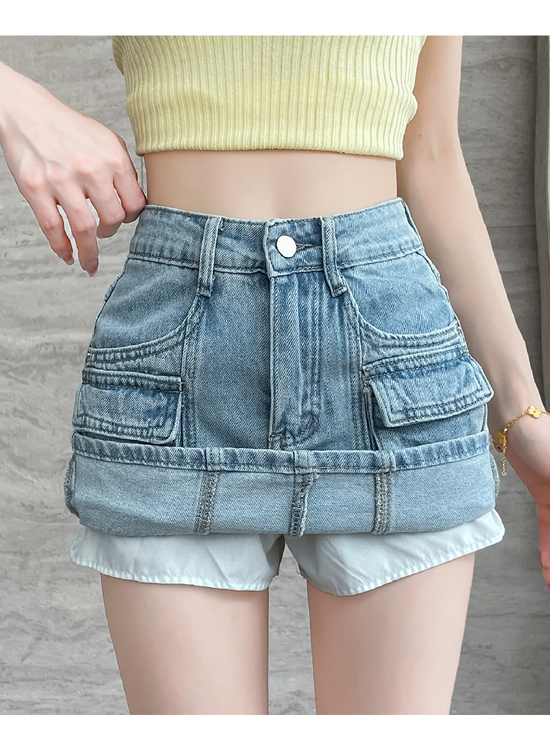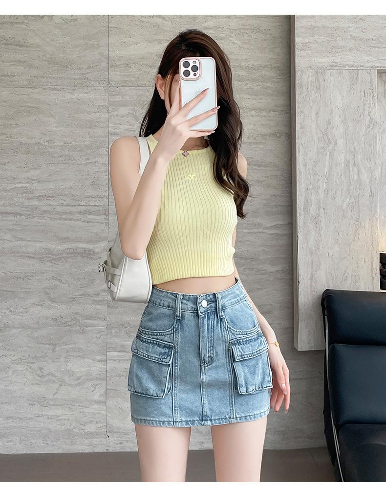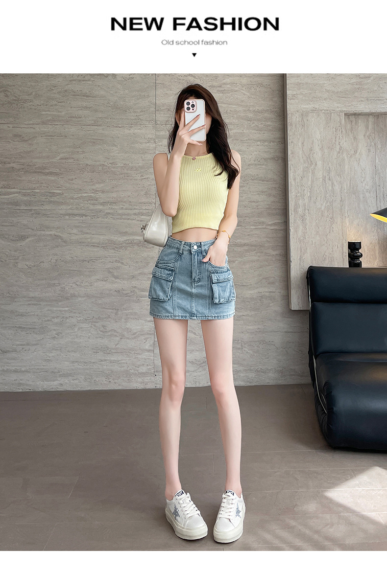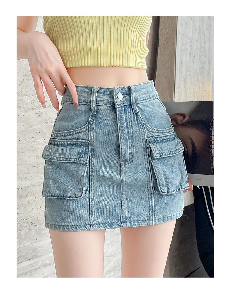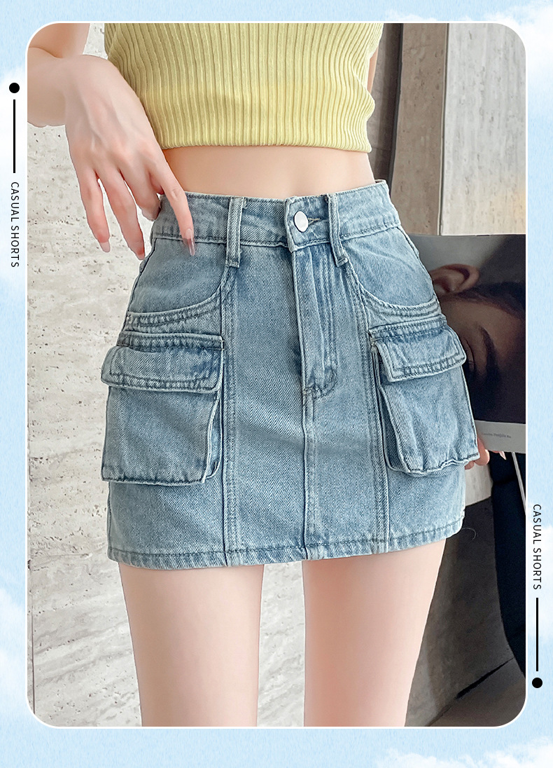 여성용 더블 포켓 노출 방지 A 라인 스커트 여성 여름 신작 한국 스타일 복고풍 다용도 작업복 스커트스토어 가기