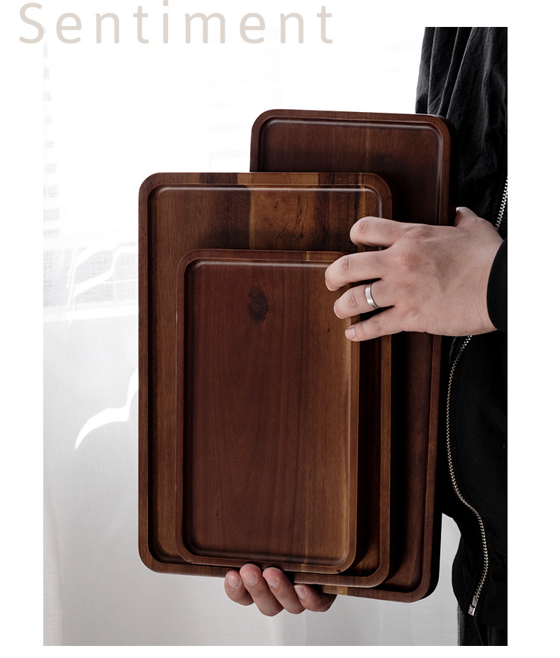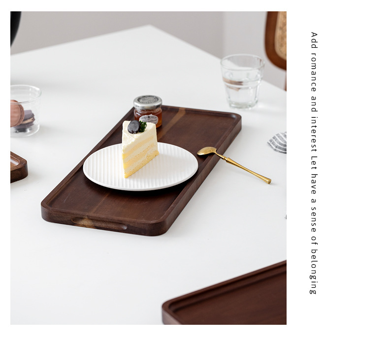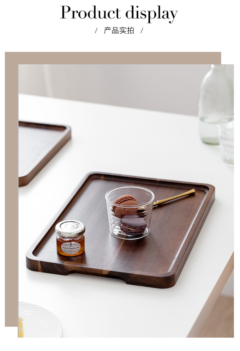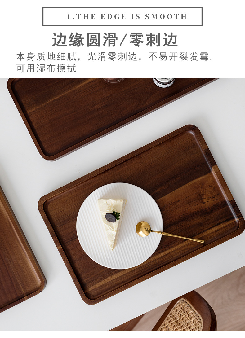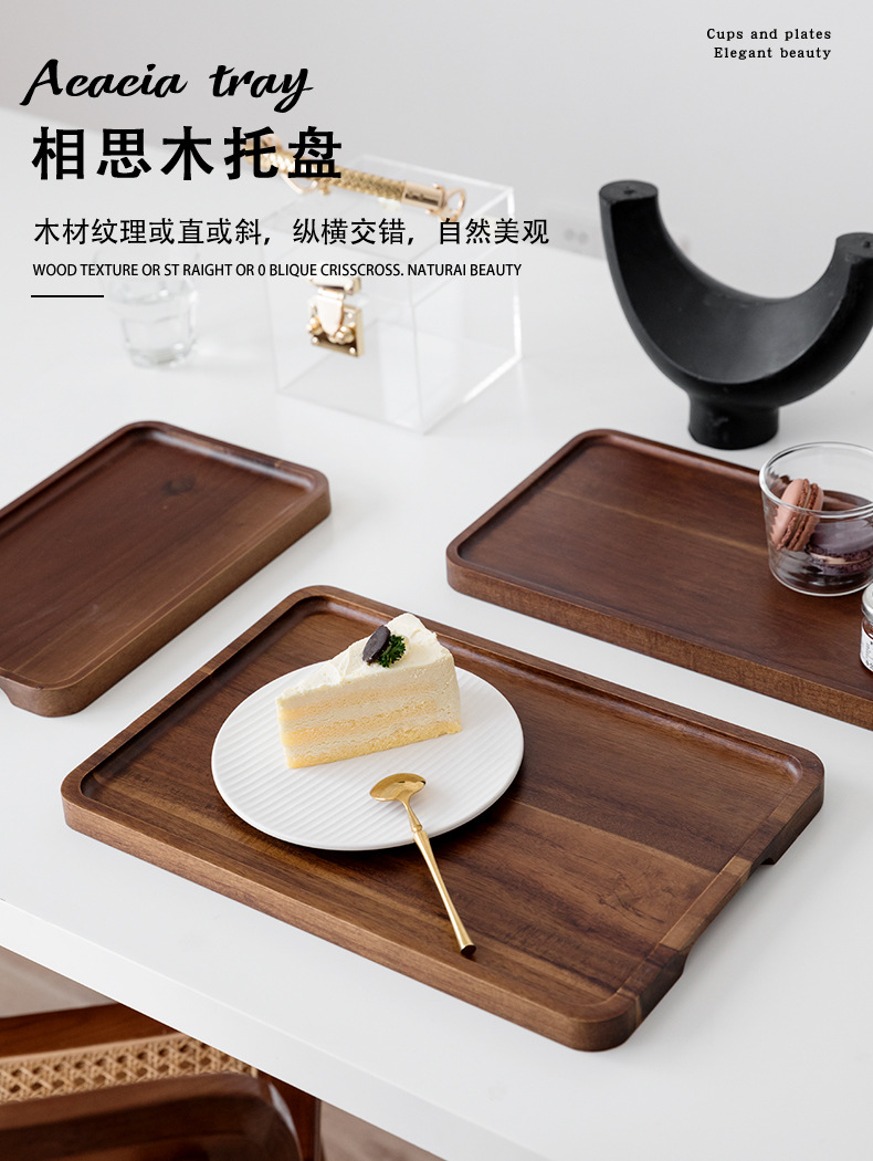 북유럽 스타일 직사각형 나무 트레이 아카시아 단단한 나무 트레이 레스토랑 차 트레이 과일 트레이 디저트 스낵 케이크 나무 트레이