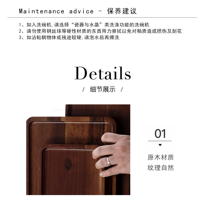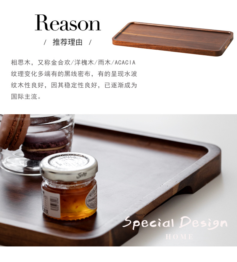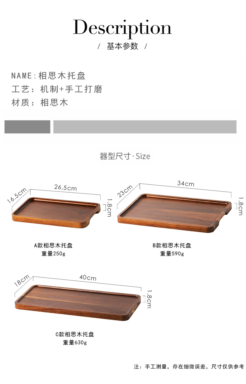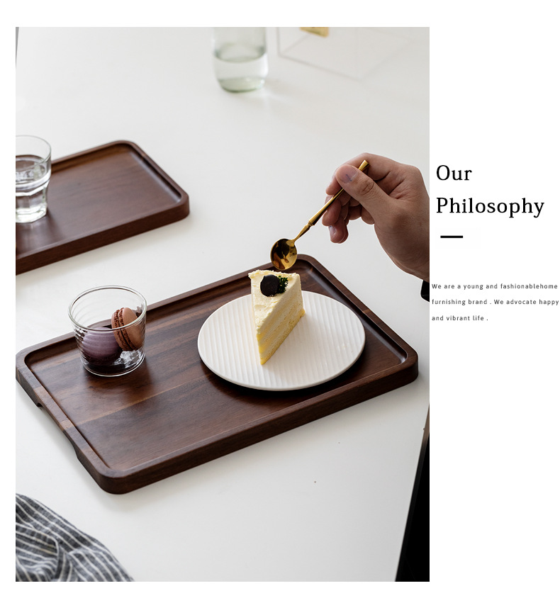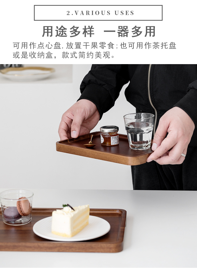 북유럽 스타일 직사각형 나무 트레이 아카시아 단단한 나무 트레이 레스토랑 차 트레이 과일 트레이 디저트 스낵 케이크 나무 트레이