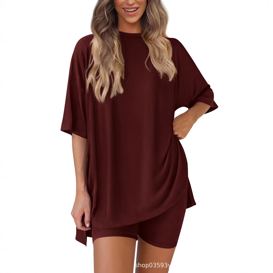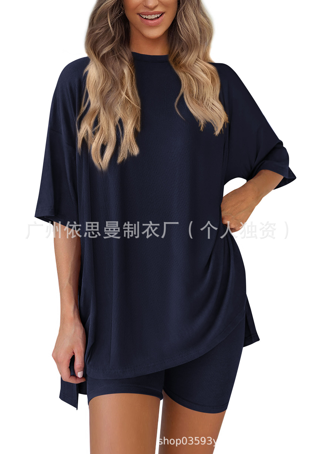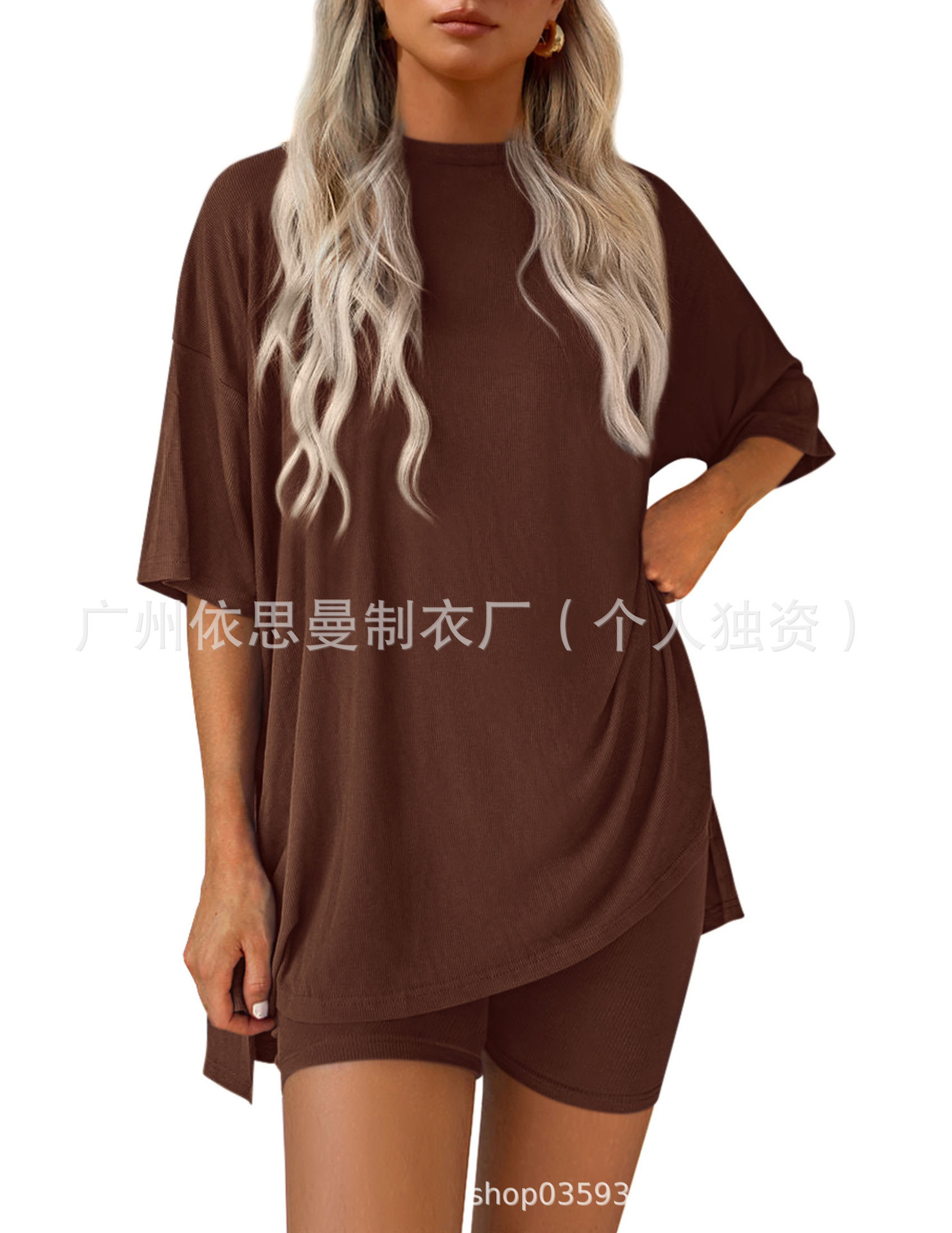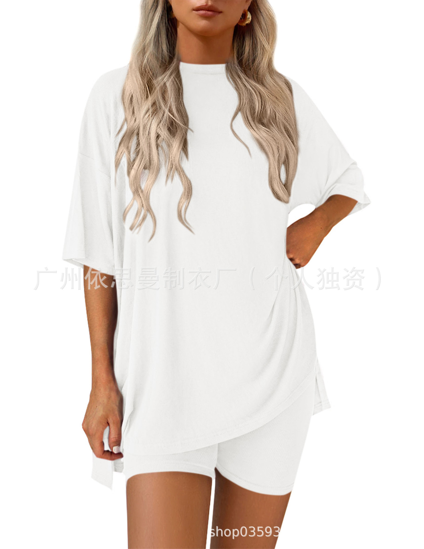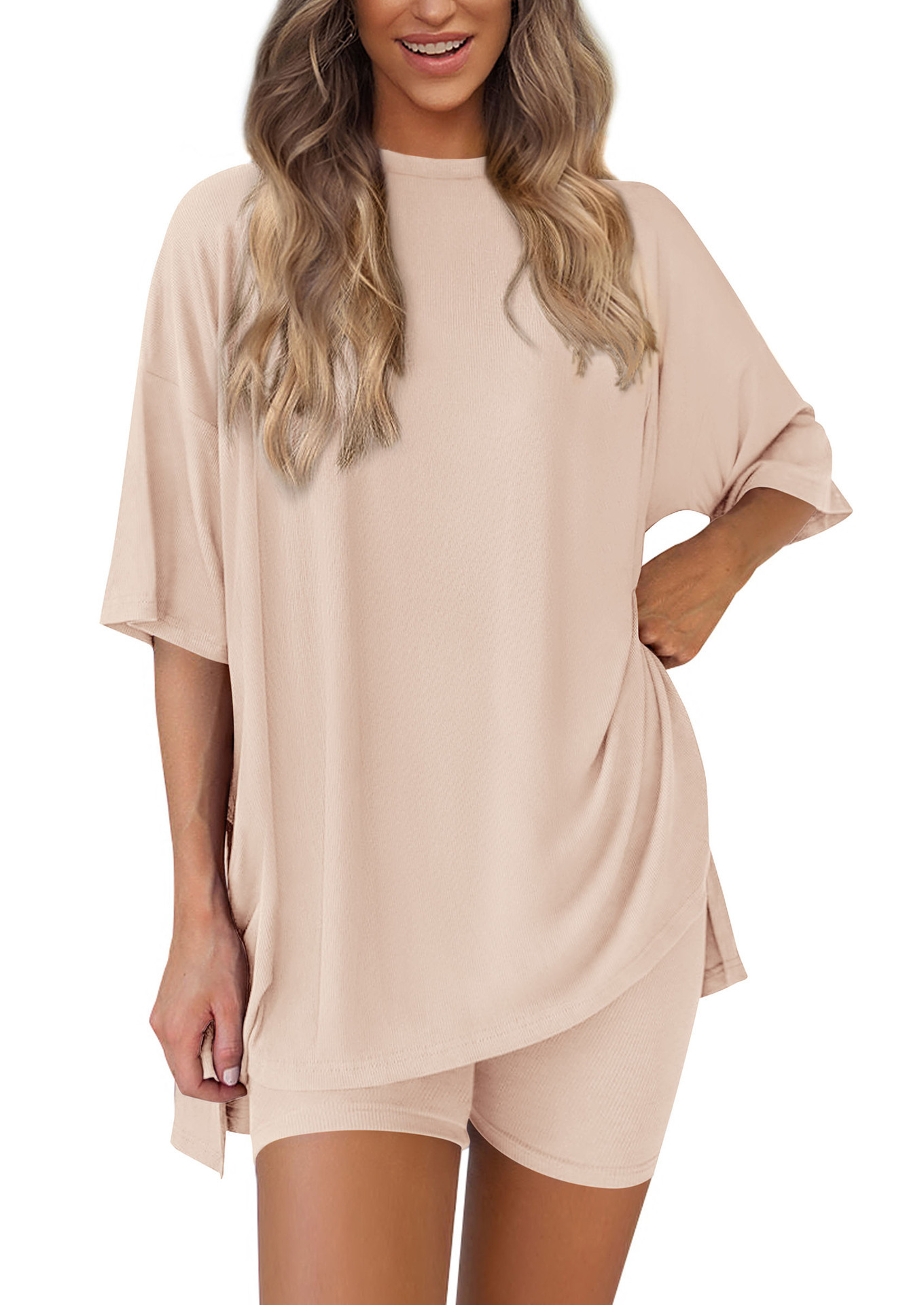 2025 봄과 여름 유럽과 미국 국경 아마존 새로운 느슨한 패션 단색 캐주얼 짧은 소매 반바지 투피스 세트스토어 가기