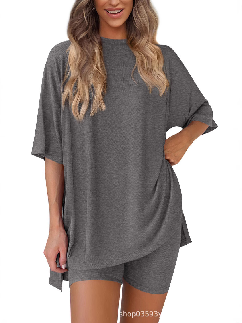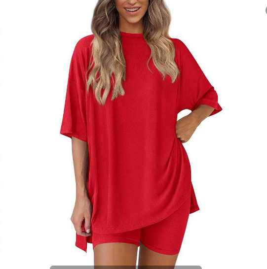 2025 봄과 여름 유럽과 미국 국경 아마존 새로운 느슨한 패션 단색 캐주얼 짧은 소매 반바지 투피스 세트