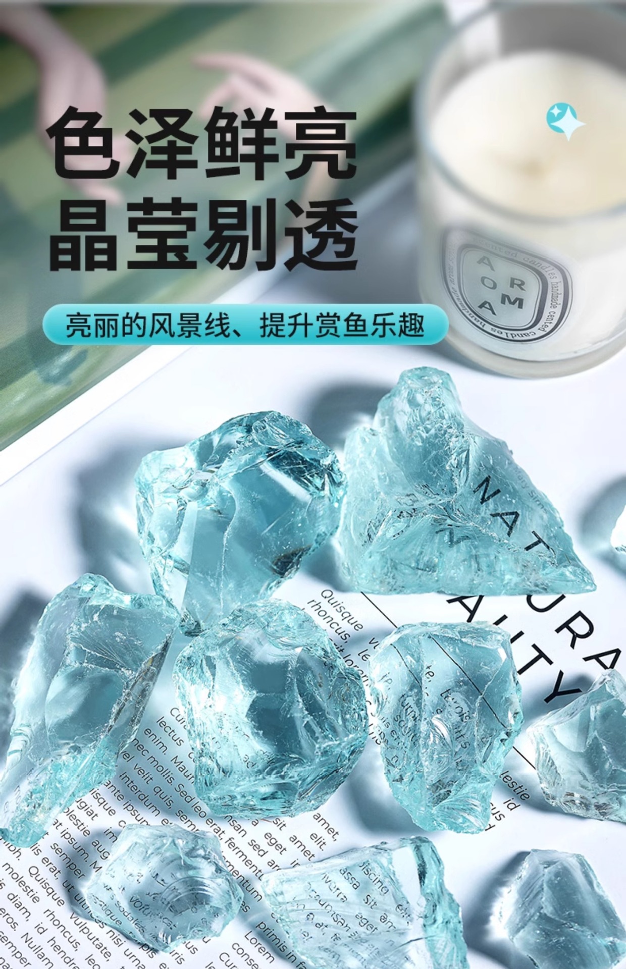 베타 물고기 수조 조경 얼음 블루 크리스탈 스톤 크리 에이 티브 수족관 장식 유리 자갈 데스크탑 풍경 작은 장식품 돌