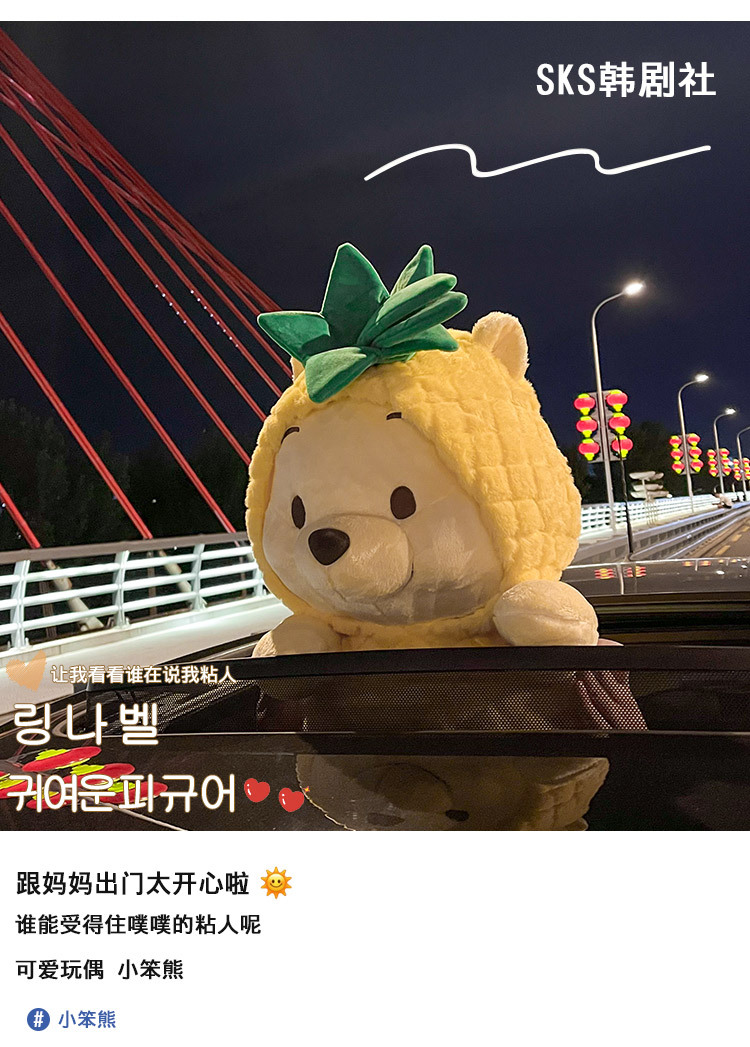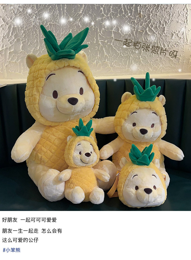 새로운 파인애플 푸푸 인형 곰 플러시 장난감 위니 파인애플 머리 노란색 곰 인형 대형 인형 도매스토어 가기
