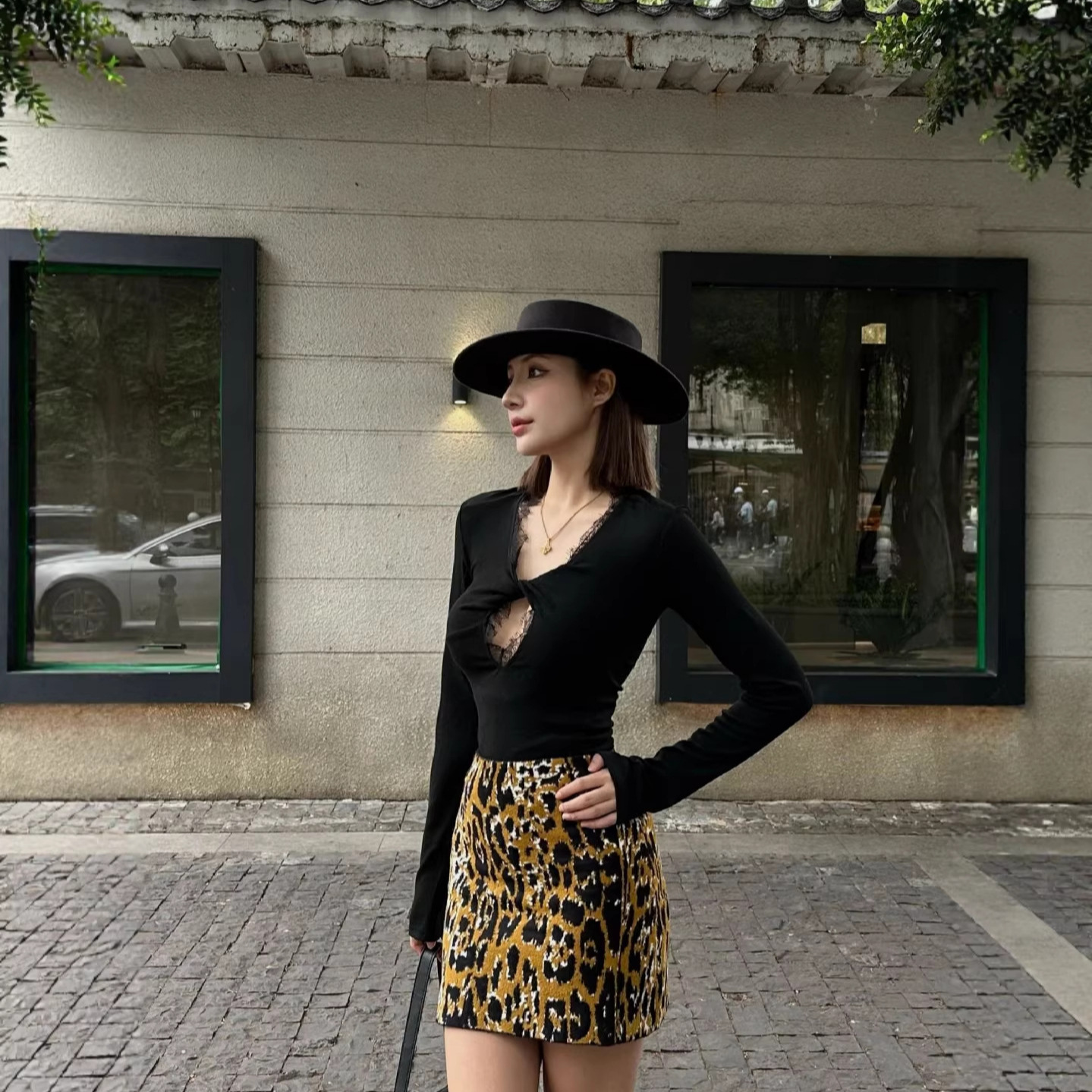 SUBHUMAN 여성 모델丨하이 엔드 레오파드 프린트 스커트 2025 여름 핫 스타일 패셔너블 섹시 여성용 짧은 스커트