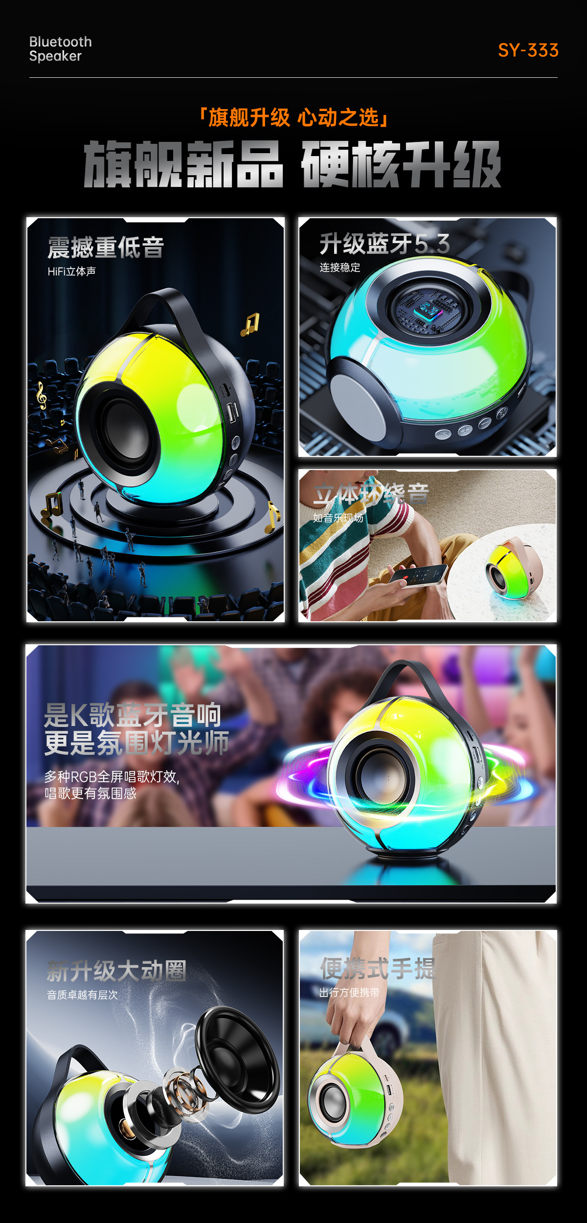 국경 블루투스 스피커 RGB 컬러 분위기 빛 야외 카드 서브 우퍼 작은 오디오 미니 휴대용 오디오스토어 가기