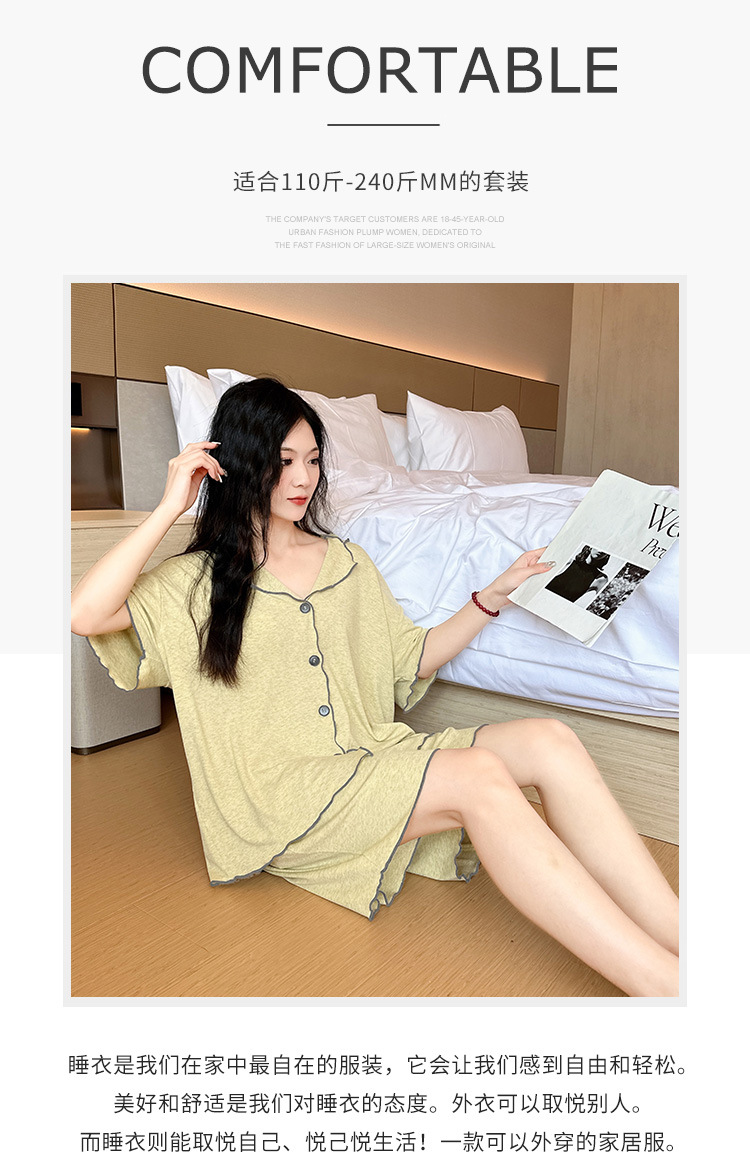 2025 여름 가을 대형 사이즈 잠옷 세트 피부 친화적이고 통기성이 좋으며, 더 크고 편안한 여성용 홈웨어 외출복으로도 착용 가능하며 편안하고 우아한 스타일