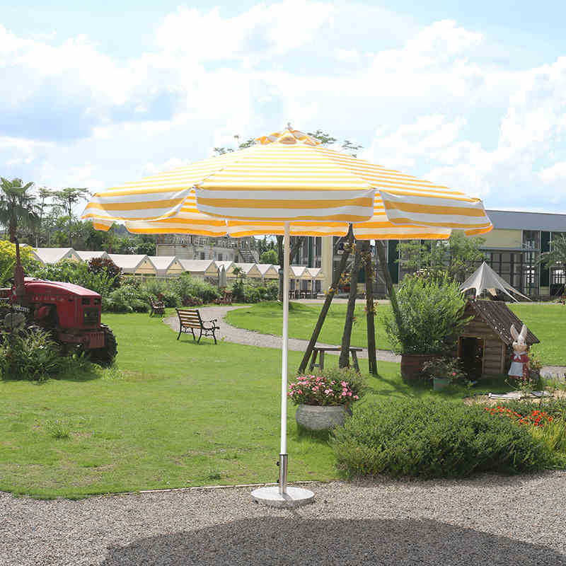 • 둥근 2.1m 알루미늄 모조 목재 노란색과 흰색 줄무늬, 가장자리가 늘어져 있고 대리석이 있으며 다양한 색상 줄무늬를 사용할 수 있습니다.