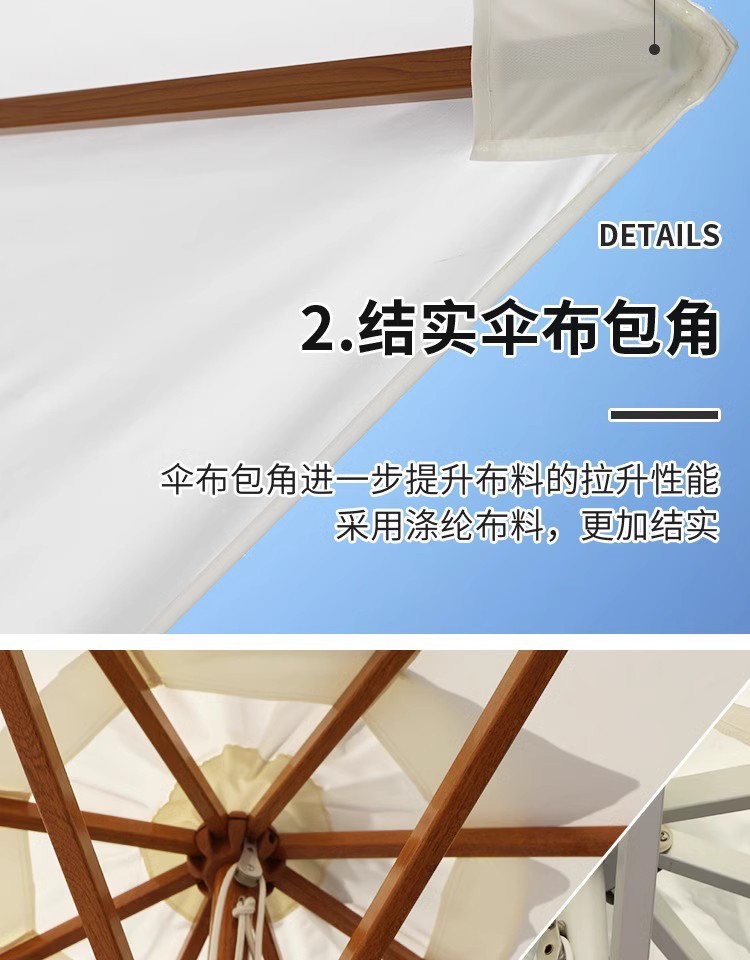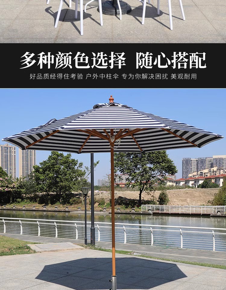 • 다양한 색상의 줄무늬와 대리석이 있는 라운드 2.7m 원목 우산 48열