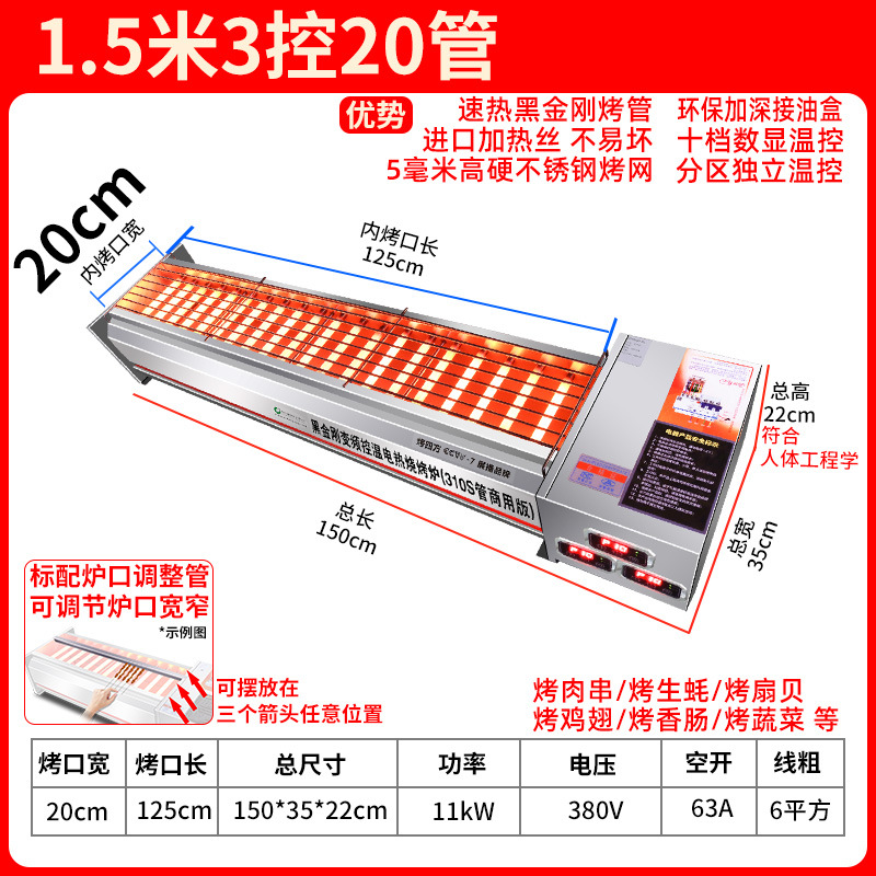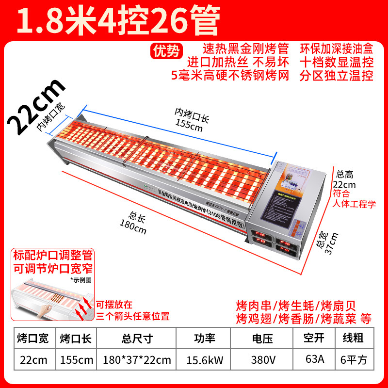 • 1.8m 제어 그릴 포트 125× 20cm 상업용 11kW 380V.