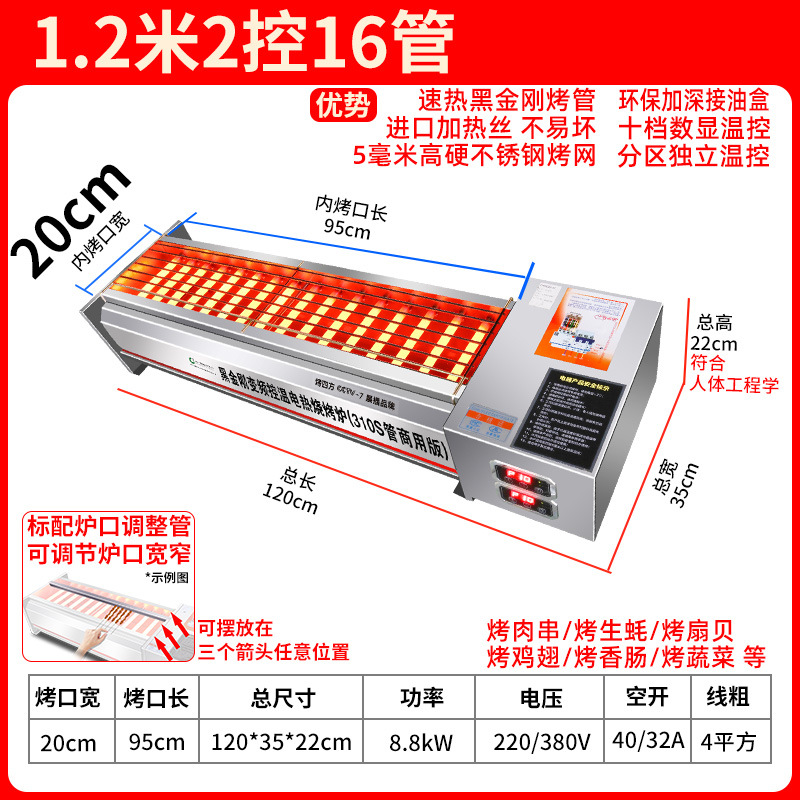 • 1.2m 제어 그릴 포트 75× 22cm 상업용 7.2kW 220V/380V.