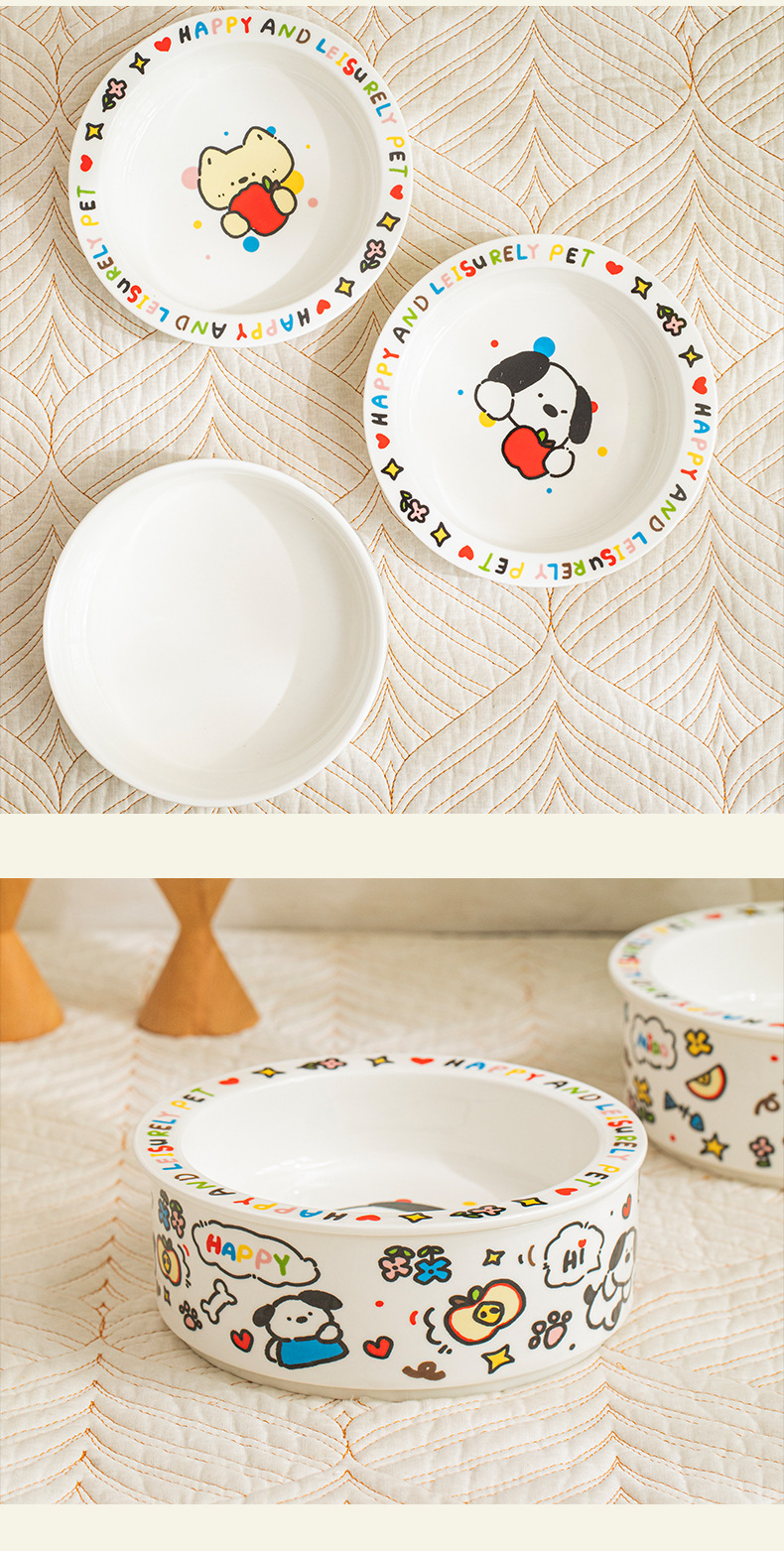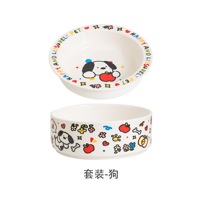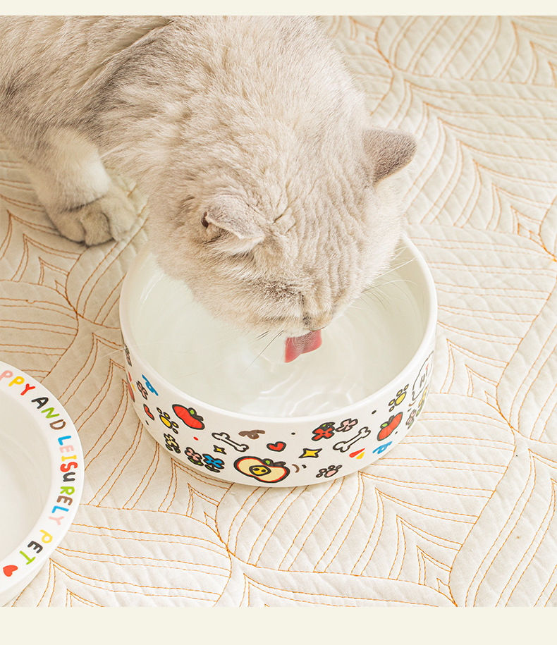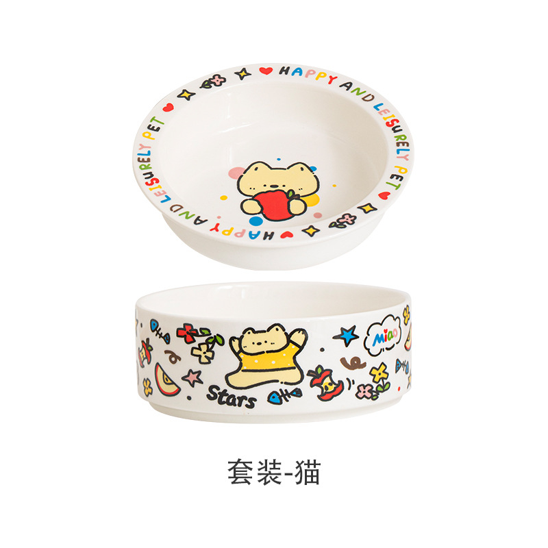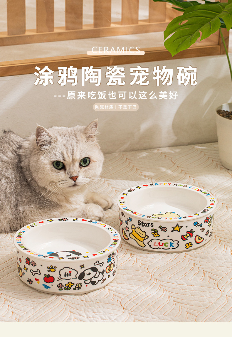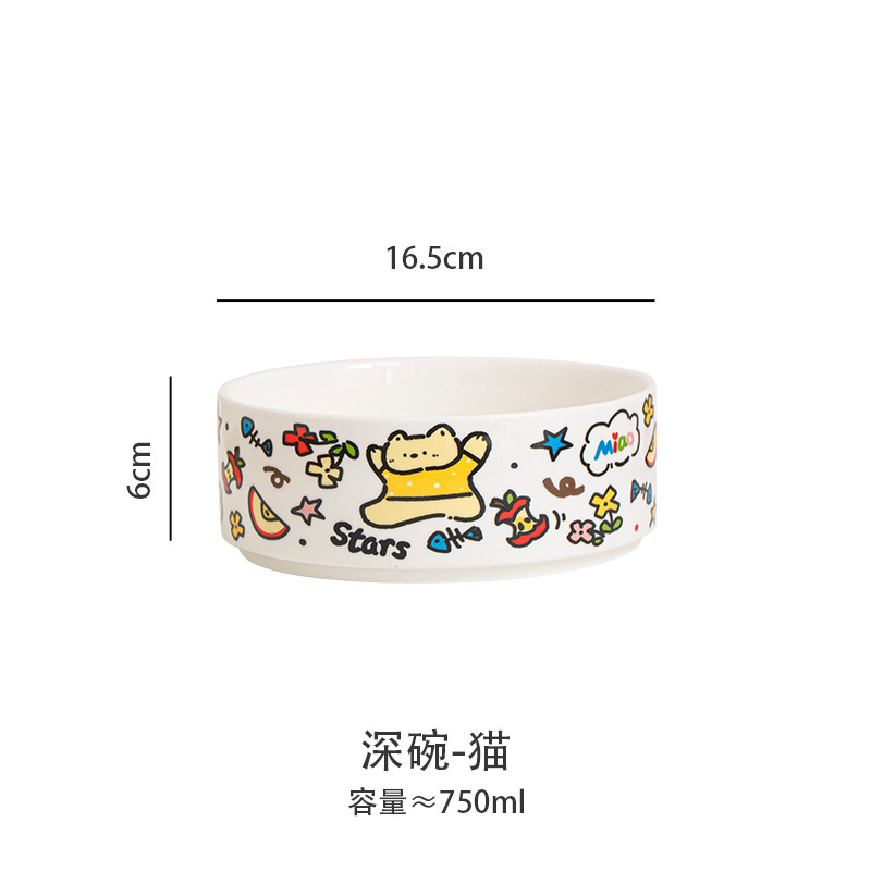 귀여운 세라믹 고양이 그릇 개 그릇 낙서 애완 동물 그릇 플랫 입 만화 물 그릇 음식 그릇 안티 노크 안티 블랙 턱 푸드 그릇스토어 가기