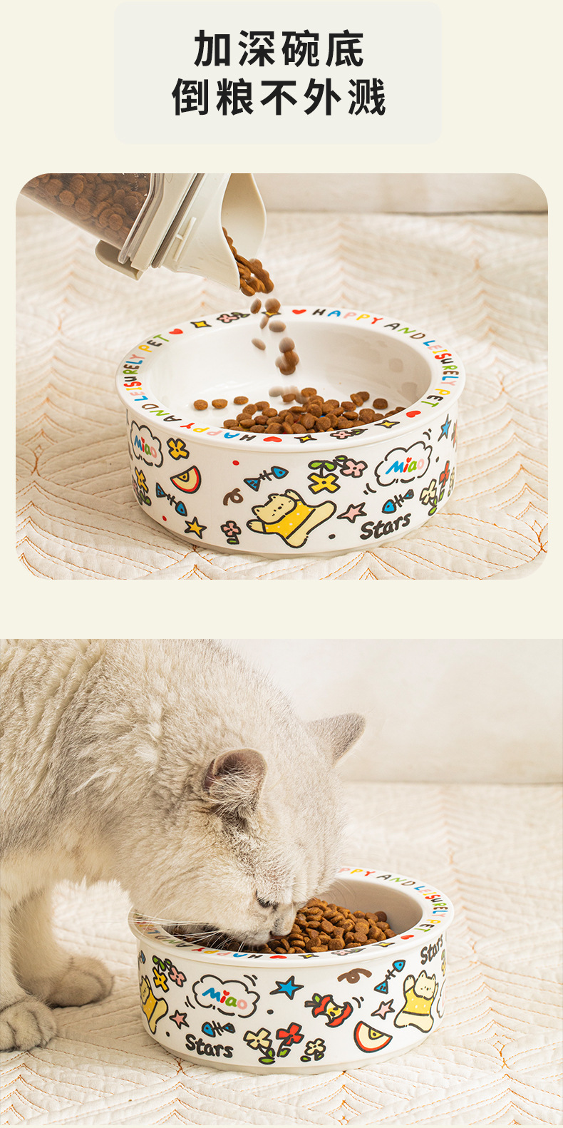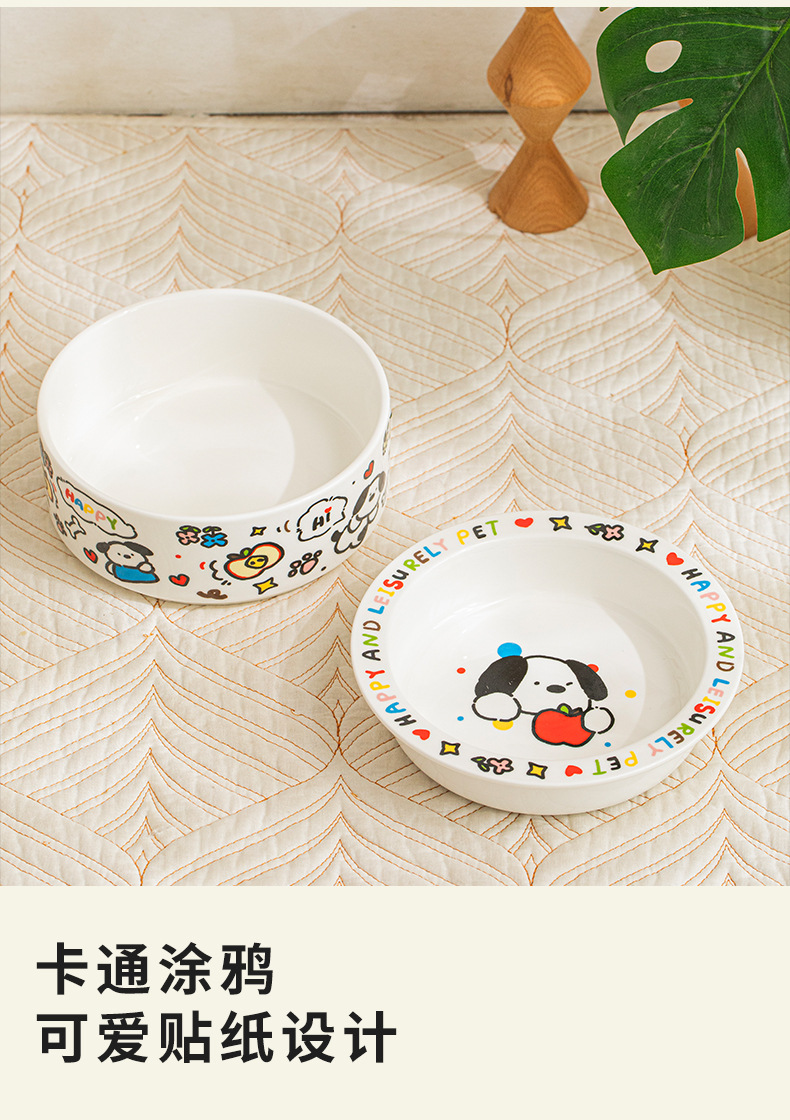 귀여운 세라믹 고양이 그릇 개 그릇 낙서 애완 동물 그릇 플랫 입 만화 물 그릇 음식 그릇 안티 노크 안티 블랙 턱 푸드 그릇