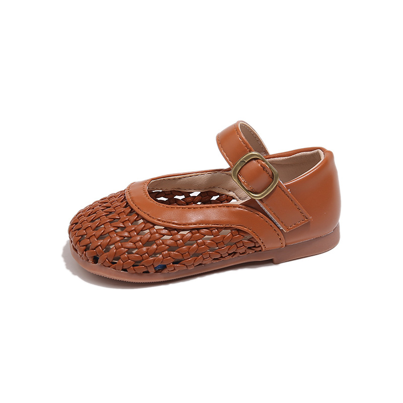 여자 샌들 한국 스타일 중공 짠 공주 신발 봄과 여름 2025 새로운 여자 Baotou 아기 부드러운 바닥 해변 신발