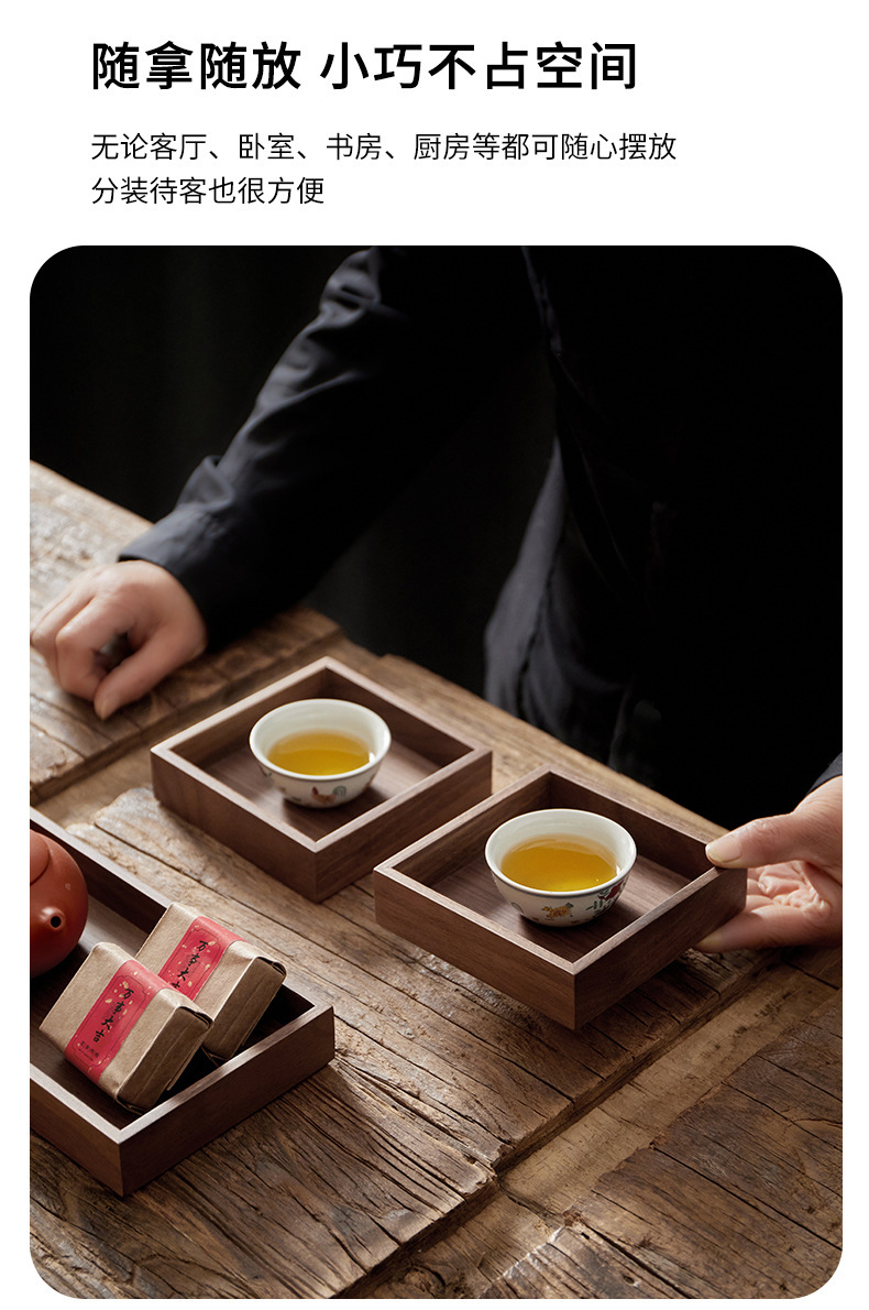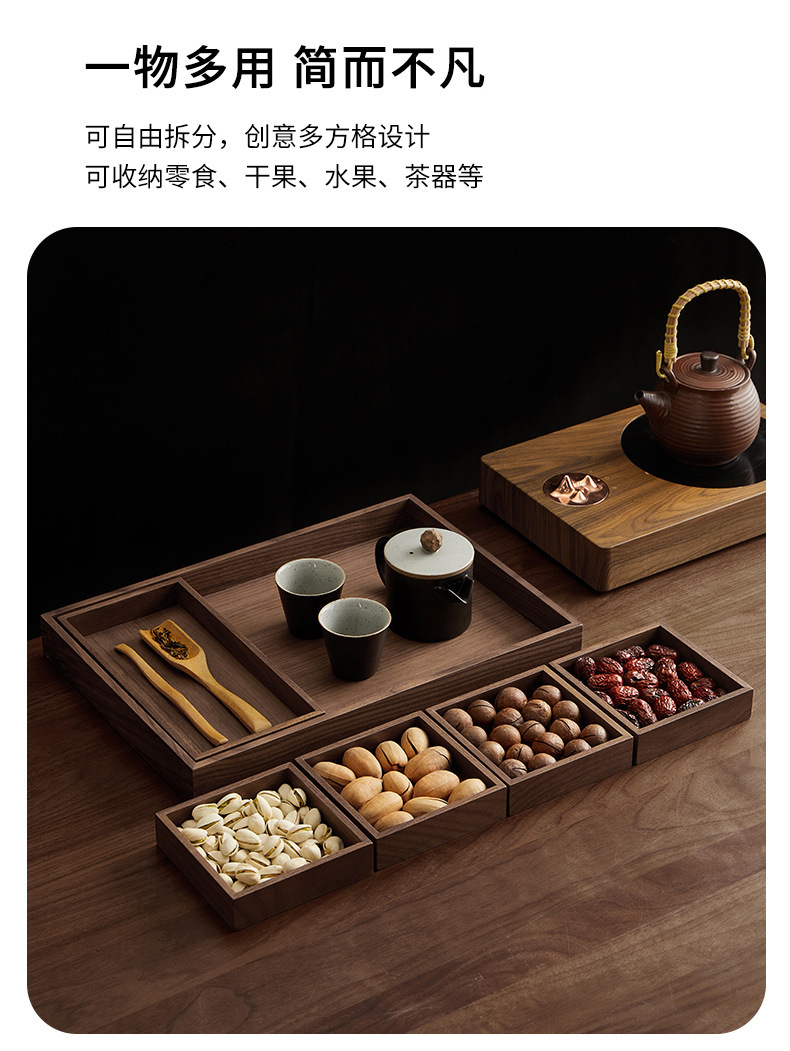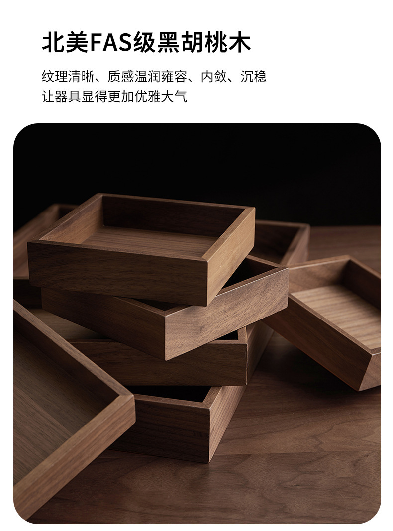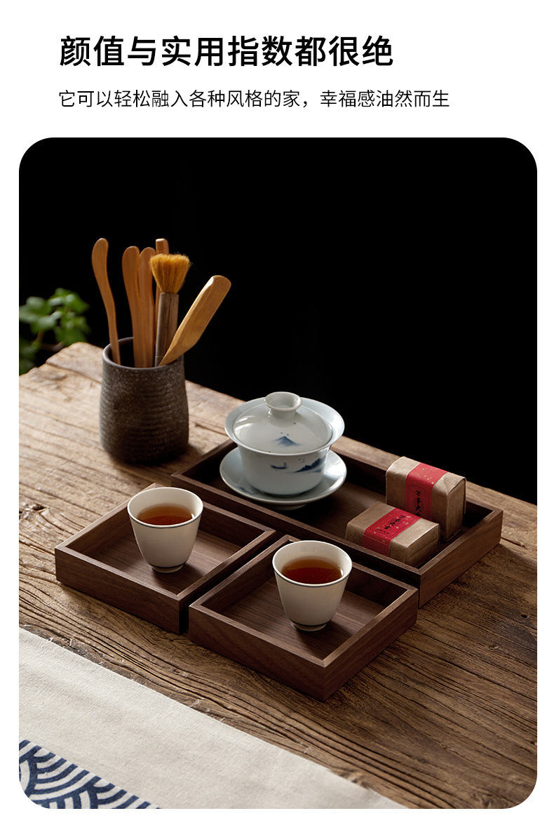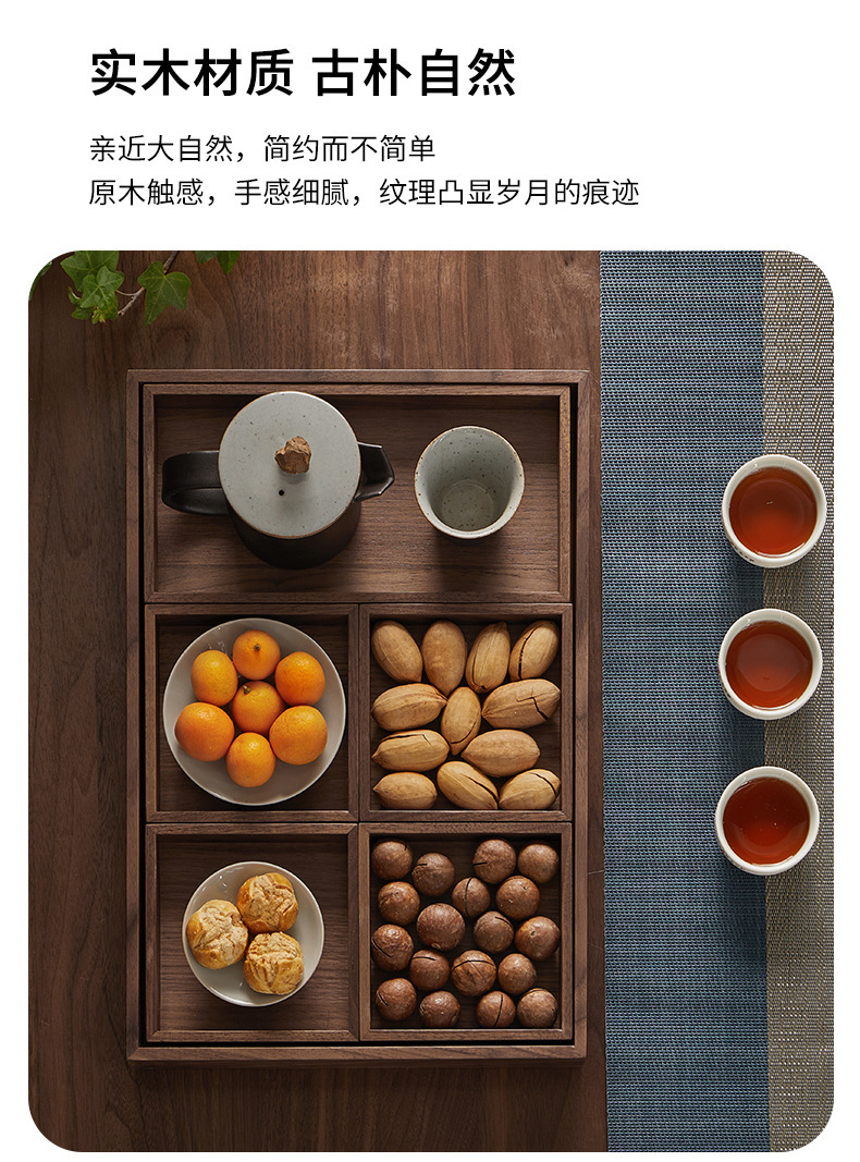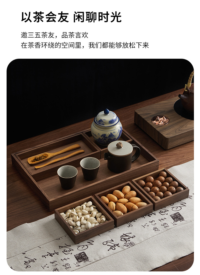 검은 호두 단단한 과일 접시 복고풍 직사각형 차 트레이 나무 가정용 차 컵 물 세트 말린 과일 호두 트레이스토어 가기
