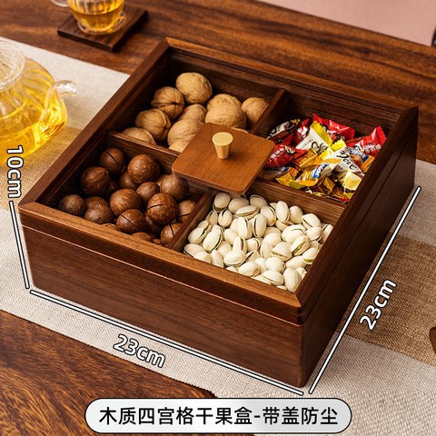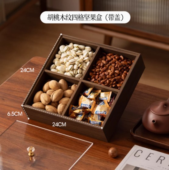 • 호두나무 나뭇결 - 뚜껑이 있는 4칸 말린 과일 접시(다이아몬드 스타일)