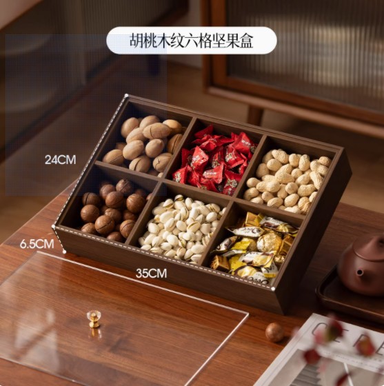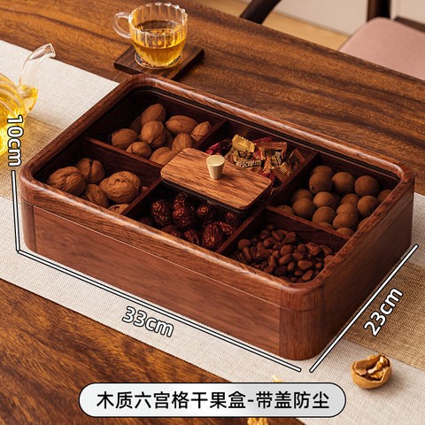 • 호두나무 나뭇결 - 뚜껑이 있는 6칸 말린 과일 접시(다이아몬드 스타일)