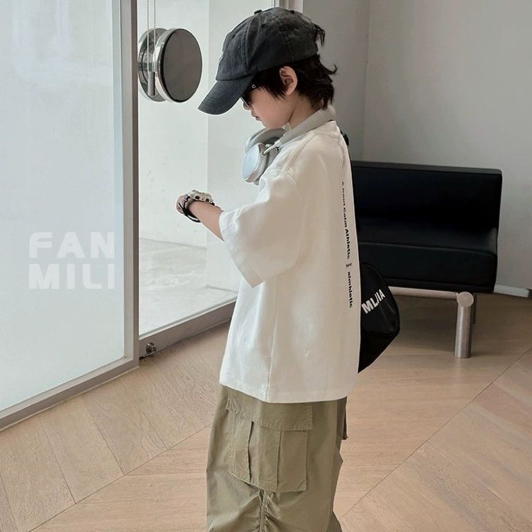 순면 남아 반팔 아동복 여름 흰색 티셔츠 2026년 신상 중대형 아동 여름 남아 패셔너블 상의