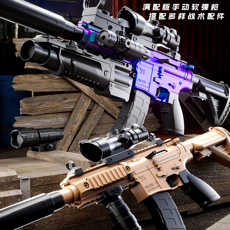맞춤형 어린이 부드러운 총알 총 M416 기관단총 수동 풀 볼트 싱글 샷 장난감 총 시뮬레이션 소년 총 장난감