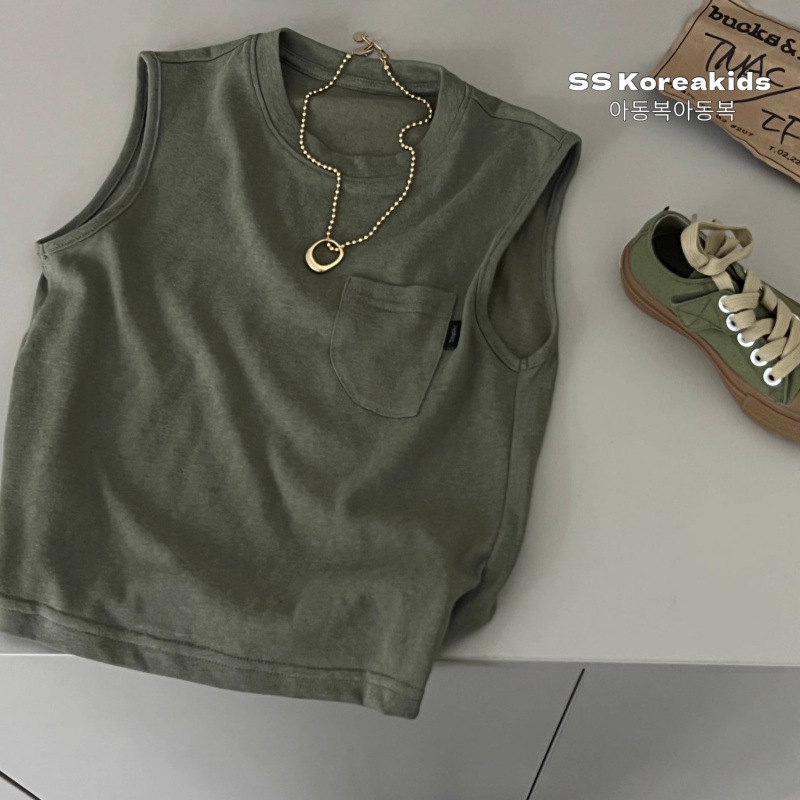 어린이 면화 경량 겉옷 여름 새 스타일 소년 중대형 어린이 민소매 티셔츠 베이비스토어 가기