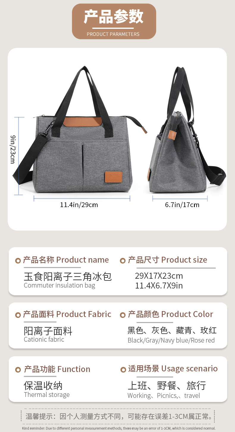 국경 간 삼각형 점심 가방 다기능 대각선 어깨 절연 가방 간단한 양이온 두꺼운 신선 유지 절연 가방