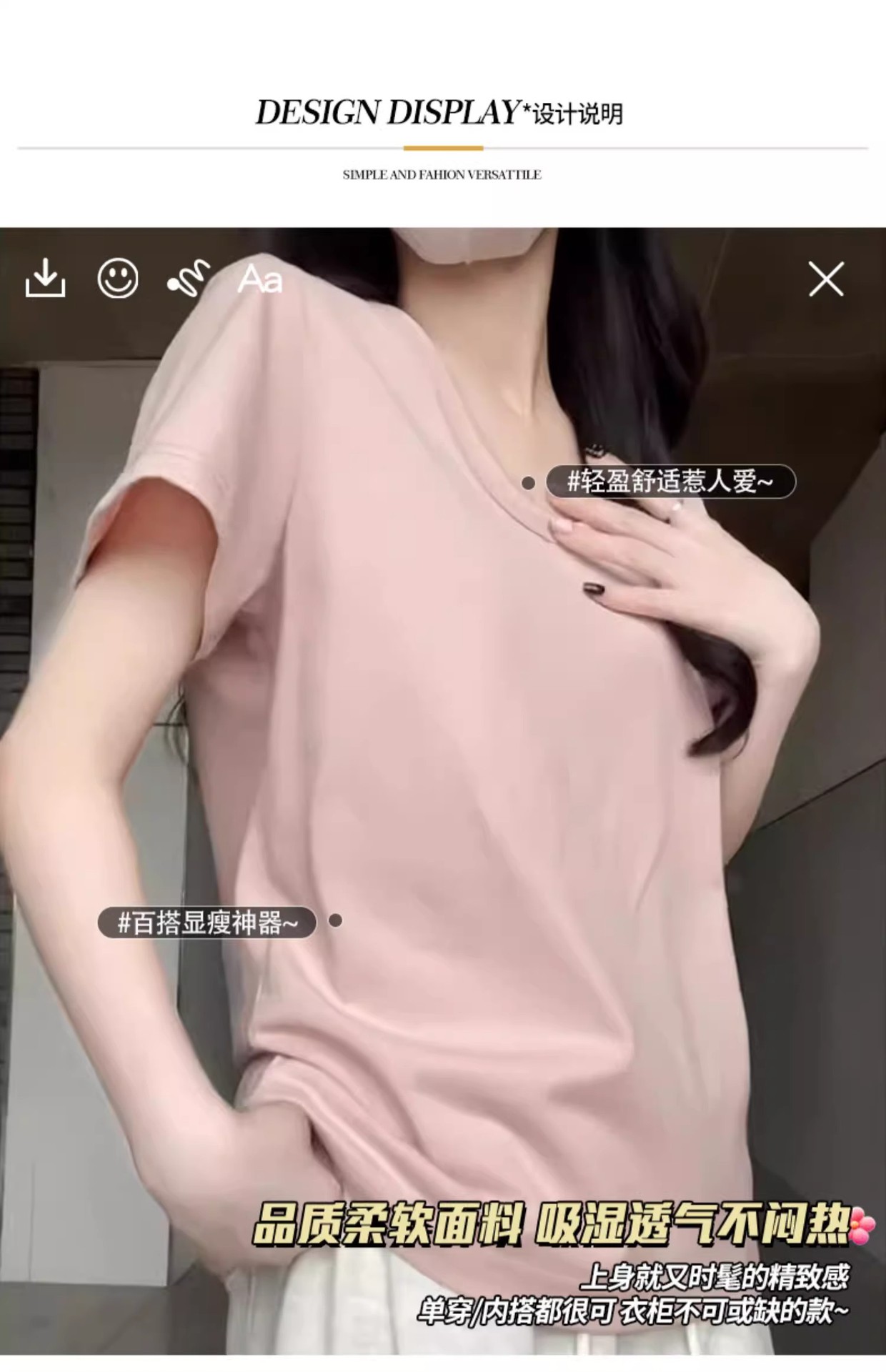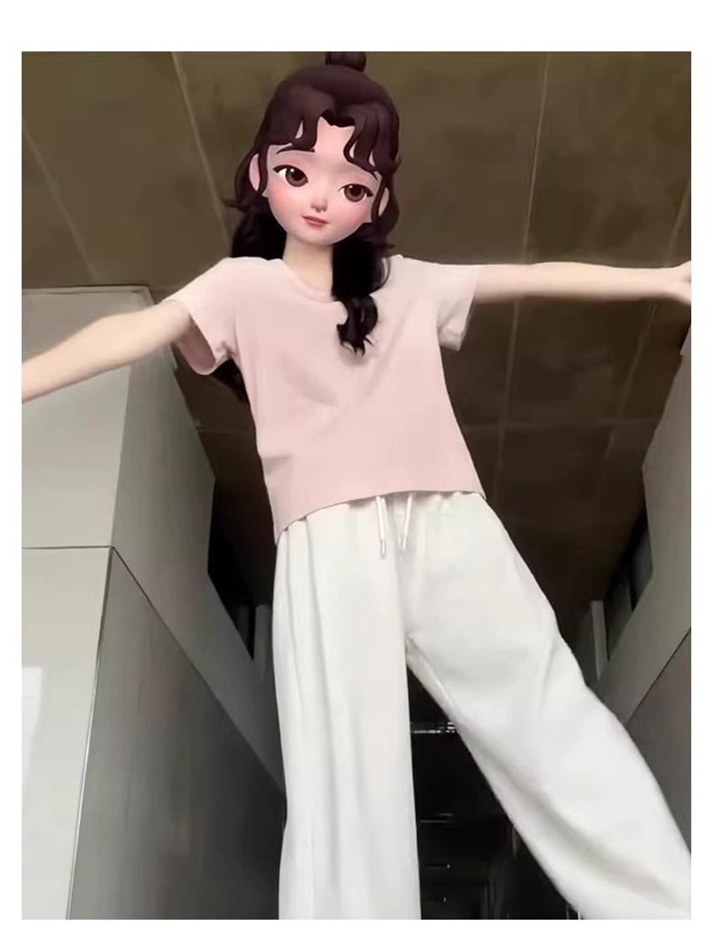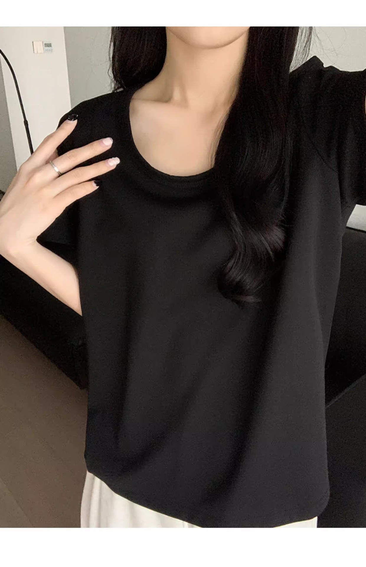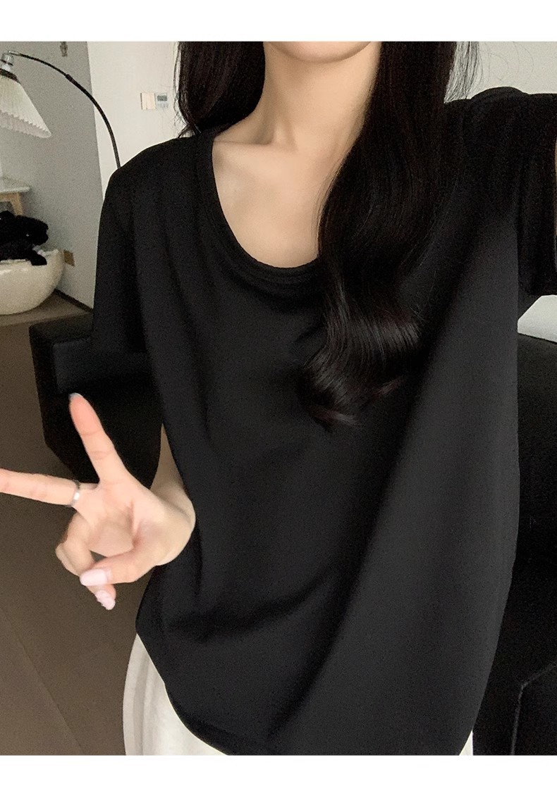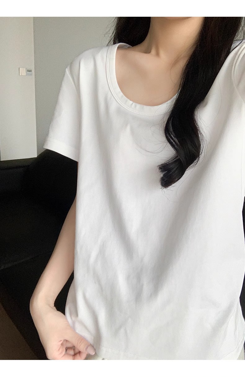 핑크색 U넥 루즈핏 숏슬리브 티셔츠 여성용 여름 2026 신상 레이지 캐주얼 솔리드 컬러 반팔 티셔츠 탑스토어 가기
