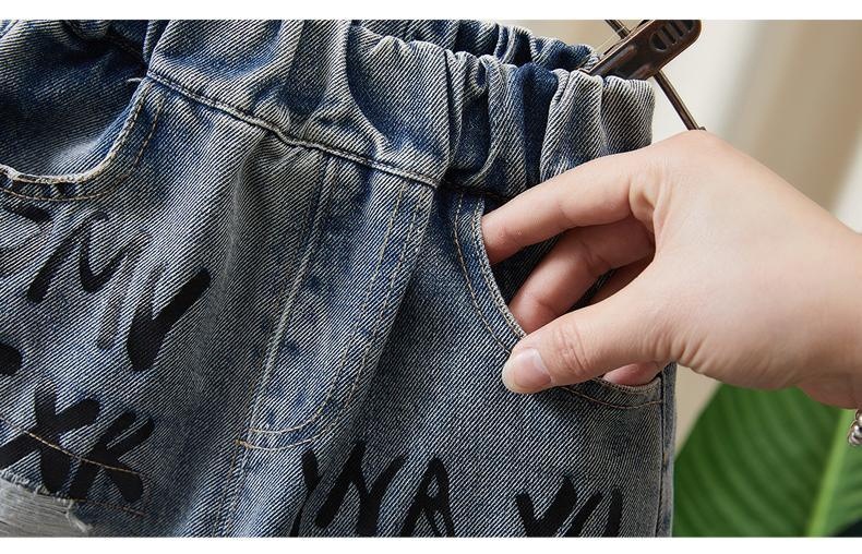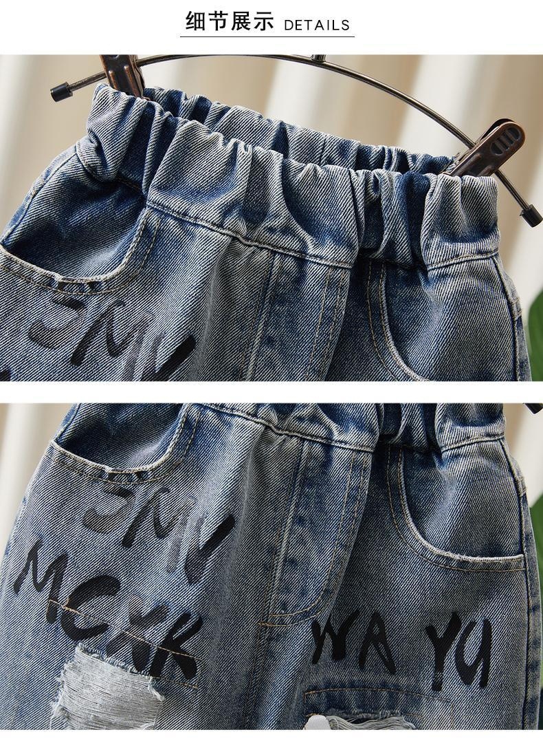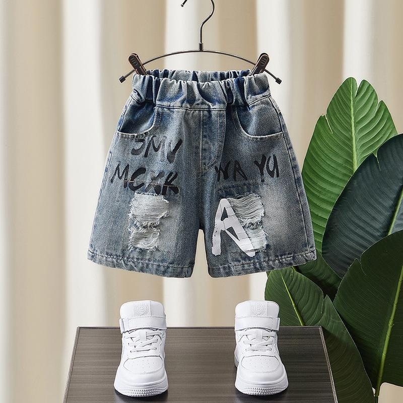 소년 데님 반바지 여름 2025 새로운 어린이 여름 멋진 찢어진 바지 아기 얇은 느슨한 겉옷스토어 가기