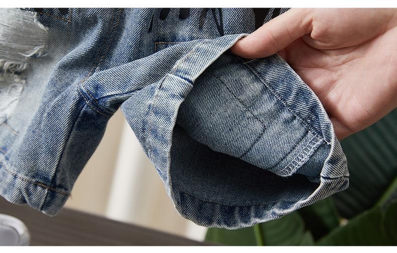 소년 데님 반바지 여름 2025 새로운 어린이 여름 멋진 찢어진 바지 아기 얇은 느슨한 겉옷
